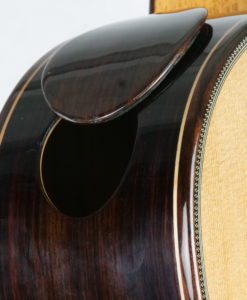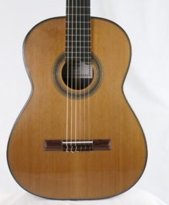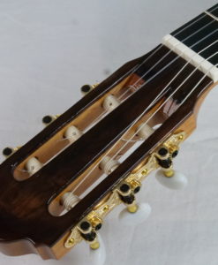 Depuis notre dernière guitare que vous avions reçue la n°202, Alexander Pashentsev a réalisé de nombreuses guitares qui lui ont permis de mettre en oeuvre des modifications fondamentales.Cette nouvelle double-table n° 242 est totalement différente : elle est dotée d’une double-table avec du blasa comme la plupart des grands luthiers de DT. La lutherie s’est encore améliorée avec moulte détail.La sonorité de cette guitare la positionne parmis les grands double-tables du marché : ampleur, épaisseur et longeur de son. Le soundport aimenté est un plus vraiment utile. Ecoutez review et aussi la vidéo comparative avec une Ramirez qui vous donnera un aperçu de la distance qu’il y a entre une double-table moderne de première qualité et une guitare traditionnelle espagnole.. Nous sommes fiers de représenter Alexander Pashentsev et de pouvoir proposer ses double-tables. Très inspirée de la lutherie espagnole, cette guitare offre une dynamique impressionnante, une sonorité cristalline et un long sustain. Une grande guitare de concert à un pris raisonnable.Alexander Pashentsev est né en 1975 et est diplômé en chimie et biologie. Parallèlement il a étudié la guitare classique avec les plus grands maîtres russes dont Sergei Bizyaev. C’est un excellent guitariste. En 2001, il réalise sa première guitare et en 2012 il parfait sa formation à Séville sous la direction de Antonio Bernal.Cette guitare qui comporte le numéro 202 est une double-table réalisé sans matériel composite mais avec du bois à la place du nomex ou du balsa afin d’avoir une sonorité plus naturelle, plus boisée.A l’inverse des double-tables précédemment vendue, celle-ci comporte des double-éclisses qui accroissent l’épaisseur et le sustain des notes.Voici quelques éléments caractéristiques de cette numéro 200: