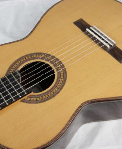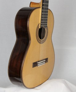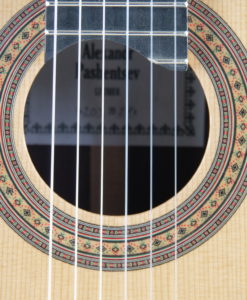 Les double-tables du luthier Alexandre Pashentsev sont constituées de tables utilisant deux couches de cèdre collées entre-elles. Cela confère une plus grande solidité sans utiliser de matériau composite comme du Nomex. Le résultat: une couleur sonore trés boisée, traditionnelle avec une dynamique proche d’une guitare traditionnelle avec cependant plus de puissance. La double-table permet de mettre en œuvre un barrage plus léger en croissillon. La lutherie est parfaite et le plaisir de jeu avec une belle épaisseur sonoreIls existent des guitaristes concertistes incroyables en Russie et de aussi d’excellents luthiers. Nous sommes fiers de représenter Alexander Pashentsev et de pouvoir proposer ses double-tables. Très inspirée de la lutherie espagnole, cette guitare offre une dynamique impressionnante, une sonorité cristalline et un long sustain. Une grande guitare de concert à un pris raisonnable.Alexander Pashentsev est né en 1975 et est diplômé en chimie et biologie. Parallèlement il a étudié la guitare classique avec les plus grands maîtres russes dont Sergei Bizyaev. C’est un excellent guitariste. En 2001, il réalise sa première guitare et en 2012 il parfait sa formation à Séville sous la direction de Antonio Bernal.Cette guitare qui comporte le numéro 202 est une double-table réalisé sans matériel composite mais avec du bois à la place du nomex ou du balsa afin d’avoir une sonorité plus naturelle, plus boisée.A l’inverse des double-tables précédemment vendue, celle-ci comporte des double-éclisses qui accroissent l’épaisseur et le sustain des notes.Voici quelques éléments caractéristiques de cette numéro 200: