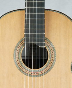 Cette guitare qui comporte le numéro 198 est une copie Fleta tout ce qu’il y a de plus traditionelle cèdre / palissandre indien