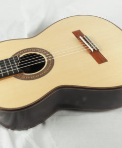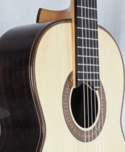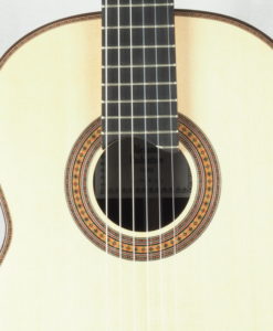 La table intérieure est en épicéa au lieu de l’habituel cèdre afin d’éclaircir la couleur de la guitare et d’enrichir les harmoniques.