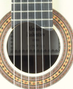 Alexander Pashentsev est né en 1975 et est diplômé en chimie et biologie. Parallèlement il a étudié la guitare classique avec les plus grands maîtres russes dont Sergei Bizyaev. C’est un excellent guitariste. En 2001, il réalise sa première guitare et en 2012 il parfait sa formation à Séville sous la direction de Antonio Bernal.
