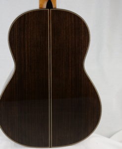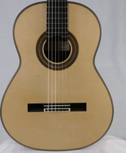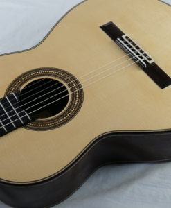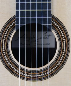 Sa lutherie s’inspire de celle d’Antonio Torres et notamment du modèle Torres SE 114 de 1888. Les matériaux sont de première qualité et la lutherie d’une grande précision. La rosace est de toute beauté et le choix des mécaniques blanches dites ‘light » de chez Alessi viennent rehausser l’élégance de cette guitare.