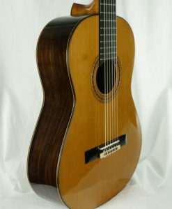 Cette copie Friederich, nous a époustouflé par sa qualité sonore. Carlos Gomes Valentim a bien sûr respecté les consignes de construction : épaisseur des bois, barrage, montage et collage. Comme pour toutes ses guitares, il s’attache à choisir les meilleures essences avec une coupe sur quartier.
