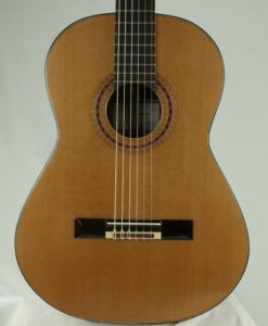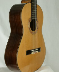 Cette copie Friederich, nous a époustouflé par sa qualité sonore. Carlos Gomes Valentim a bien sûr respecté les consignes de construction : épaisseur des bois, barrage, montage et collage. Comme pour toutes ses guitares, il s’attache à choisir les meilleures essences avec une coupe sur quartier.