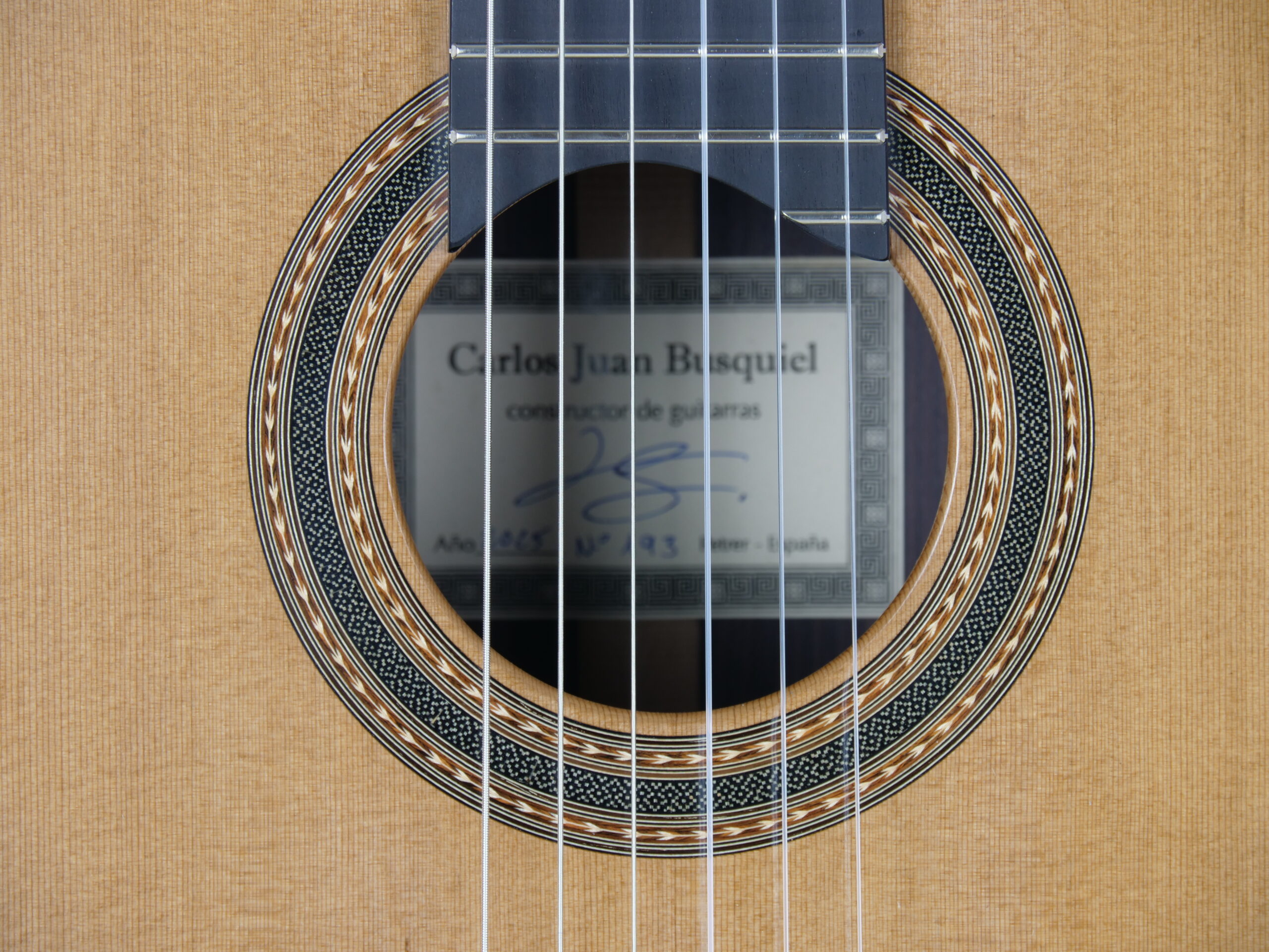 Carlos Juan Busquiel habite à Petrer, à l’est d’Alicante, et possède une vaste expérience dans la construction de guitares classiques. Sa formation musicale a commencé par des études de violon au conservatoire, mais son intérêt pour la construction d’instruments l’a amené à se spécialiser dans la construction artisanale de guitares espagnoles. Tout au long de sa carrière, il a travaillé avec des maîtres renommés tels que Rafael López Porras et José Luis Romanillos, qui ont joué un rôle fondamental dans sa formation de luthier et dans la transmission de leurs connaissances et de leur passion pour la construction de guitares. En conséquence, il a développé son propre style et a créé une série de modèles de guitare traditionnels espagnols appréciés des guitaristes du monde entier.