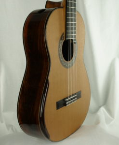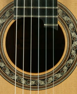 Ses double-tables contrairement aux double-tables allemandes présentent des éclisses contre-collées (comme les Friederich) et le barrage est en balsa pour ajouter un peu de brilllance.Charalampos Koumridis est un luthier grecque qui fabrique des guitares classiques innovantes étonnantes avec un objectif de musicalité. Charalampos Koumridiis est sans aucun doute notre découverte 2017.Alors que nous pensions connaître tous les ‘grands’ luthiers Européens, nous avons découvert Charalampos Koumridis, un luthier qui fabrique aussi bien des guitares traditionnelles de hautes factures que des double-tables et des lattices. Toutes ses guitares sont surprenantes de musicalité, Charalampos réussit à ‘gommer’ les sonorités typiques des double-tables et lattice pour ne conserver que l’ajout de puissance et la musicalité.Voici quelques précisions techniques sur cette guitare: