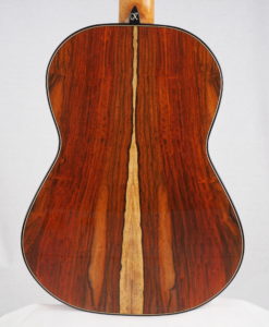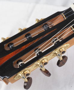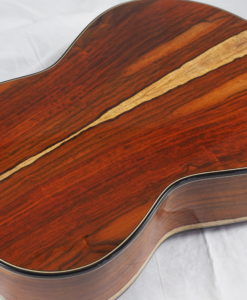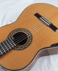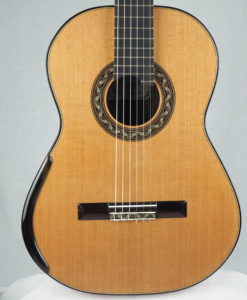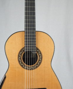 Les guitares de Charalamps Koumridis sont parmi nos best-sellers. Elles conviennent aux plus ‘traditionalistes’ des guitaristes qui recherchent avant la beauté sonore des grands guitares traditionnelles avec une réserve de puissance presque sans limite. Cette guitare n° 167 est une nouvelle version de ses DT. De conception plus légère, elle intégre du balsa en plus du nomex dans sa table. L’instrument gagne en magnabilité et en confort. Le niveau de puissance et la dynamique sont similaires et la sonorité est reste naturelle. Zéro défaut, une générosité sonore impressionnante, une lutherie à tomber, puissante avec une sonorité ‘lourde’ et crémeuse et un bel équilibre rondeur / clarté.