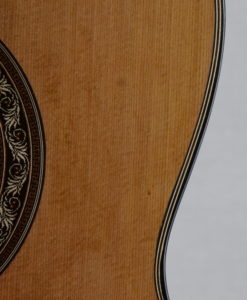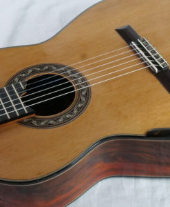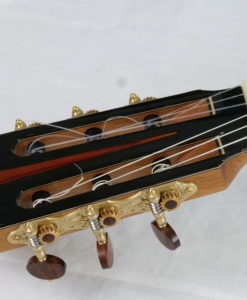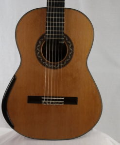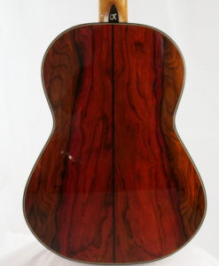 Le niveau de puissance et la dynamique sont similaires et la sonorité est reste naturelle. Zéro défaut, une générosité sonore impressionnante, une lutherie à tomber, puissante avec une sonorité ‘lourde’ et crémeuse et un bel équilibre rondeur / clarté.Ses double-tables contrairement aux double-tables allemandes présentent des éclisses contre-collées (comme les Friederich) et le barrage est en balsa pour ajouter un peu de brilllance.Charalampos Koumridis est un luthier grecque qui fabrique des guitares classiques innovantes étonnantes avec un objectif de musicalité. Charalampos Koumridiis est sans aucun doute notre découverte 2017.Alors que nous pensions connaître tous les ‘grands’ luthiers Européens, nous avons découvert Charalampos Koumridis, un luthier qui fabrique aussi bien des guitares traditionnelles de hautes factures que des double-tables et des lattices. Toutes ses guitares sont surprenantes de musicalité, Charalampos réussit à ‘gommer’ les sonorités typiques des double-tables et lattice pour ne conserver que l’ajout de puissance et la musicalité.Voici quelques précisions techniques sur cette guitare: