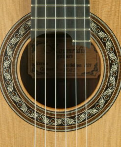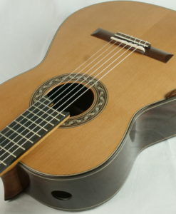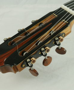 Ses double-tables contrairement aux double-tables allemandes présentent des éclisses contre-collées (comme les Friederich) et le barrage est en balsa pour ajouter un peu de brilllance.Charalampos Koumridis est un luthier grecque qui fabrique des guitares classiques innovantes étonnantes avec un objectif de musicalité. Charalampos Koumridiis est sans aucun doute notre découverte 2017.Alors que nous pensions connaître tous les ‘grands’ luthiers Européens, nous avons découvert Charalampos Koumridis, un luthier qui fabrique aussi bien des guitares traditionnelles de hautes factures que des double-tables et des lattices. Toutes ses guitares sont surprenantes de musicalité, Charalampos réussit à ‘gommer’ les sonorités typiques des double-tables et lattice pour ne conserver que l’ajout de puissance et la musicalité.Voici quelques précisions techniques sur cette guitare: