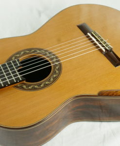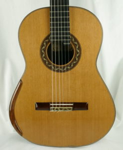 - Manche: cèdre espagnol renforcé avec de l’ébène épaisseur : 1ére fret – 21.5 mm 9e fret – 23 mm