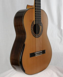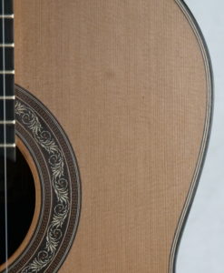 - Manche: cèdre espagnol renforcé avec de l’ébène épaisseur : 1ére fret – 21.5 mm 9e fret – 23 mm