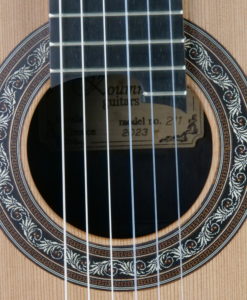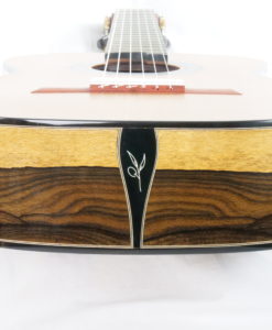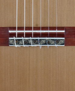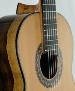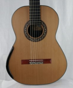 - Manche: cèdre espagnol renforcé avec de l’ébène épaisseur : 1ére fret – 21.5 mm 9e fret – 23 mm