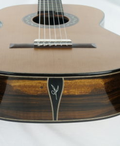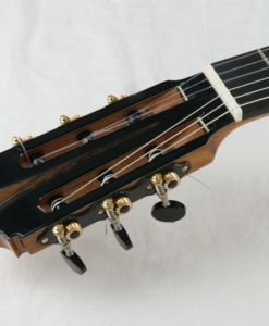 - Manche: cèdre espagnol renforcé avec de l’ébène épaisseur : 1ére fret – 21.5 mm 9e fret – 23 mm