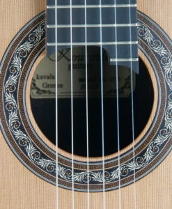 La guitare N° 215 est faite sur la base du nouveau lattice de Charalampos Koumridis (comme les n° 211 et 204). Plus légère avec des notes encore plus épaisses. Plus de dynamique avec une couleur traditionnelle. La séparation des voix est impressionnante. Les précédentes lattice de Charalampos étaient magiques, celle-ci est magnifiqueDepuis quelques temps Charalampos voulait tester des modifications assez importantes dans la structure et les matériaux utilisés à l’intérieur de sa lattice. Le résultat est époustouflant et Charalampos a ouvert la voie vers une nouvelle génération de guitares plus musicale et sans limite pour le guitariste. Charalampos Koumridis est un luthier grecque qui fabrique des guitares classiques innovantes lattice et double-tables étonnantes avec un objectif de musicalité. Charalampos Koumridis est sans aucun doute notre découverte 2017.Alors que nous pensions connaître tous les ‘grands’ luthiers Européens, nous avons découvert Charalampos Koumridis, un luthier qui fabrique aussi bien des guitares traditionnelles de hautes factures que des double-tables et des lattices. Toutes ses guitares sont surprenantes de musicalité, Charalampos réussit à ‘gommer’ les sonorités typiques des double-tables et lattice pour ne conserver que l’ajout de puissance et la musicalité. Cette guitare n°211est une lattice inspirée des guitares Australiennes de Greg Smallmann mais avec d’importantes différences en matière de structure et de matériaux . Toujours le même résultat avec de la rondeur, de l’amplitude sonore sans le coté un peu ‘cartonneux’ de certaines Smallman dans les basses. Contrairement à certaines lattice Australiennes celles de Charalampos offrent un sonorité assez traditionnelle mais avec une ampleur et un sustain infinie. Nous attendons quelques éléments biographiques de la part de Charalambos, et en attendant voici quelques précisions techniques sur cette guitare: