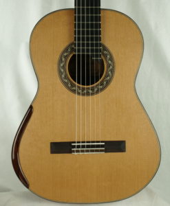- Manche: cèdre espagnol renforcé avec de l’ébène épaisseur : 1ére fret – 21.5 mm 9e fret – 23 mm