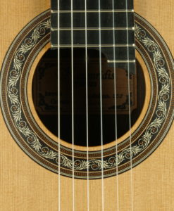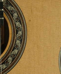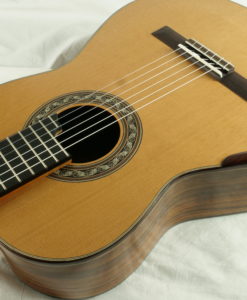 - Manche: cèdre espagnol renforcé avec de l’ébène épaisseur : 1ére fret – 21.5 mm 9e fret – 23 mm