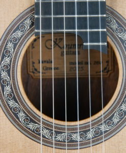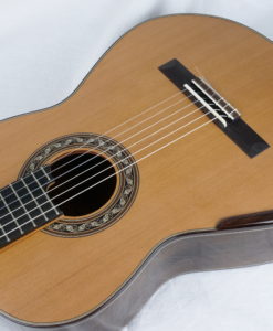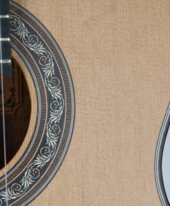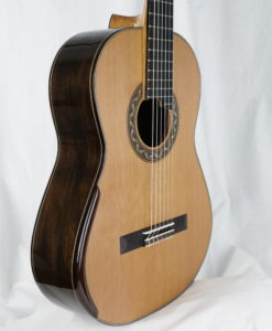 - Manche: cèdre espagnol renforcé avec de l’ébène épaisseur : 1ére fret – 21.5 mm 9e fret – 23 mm