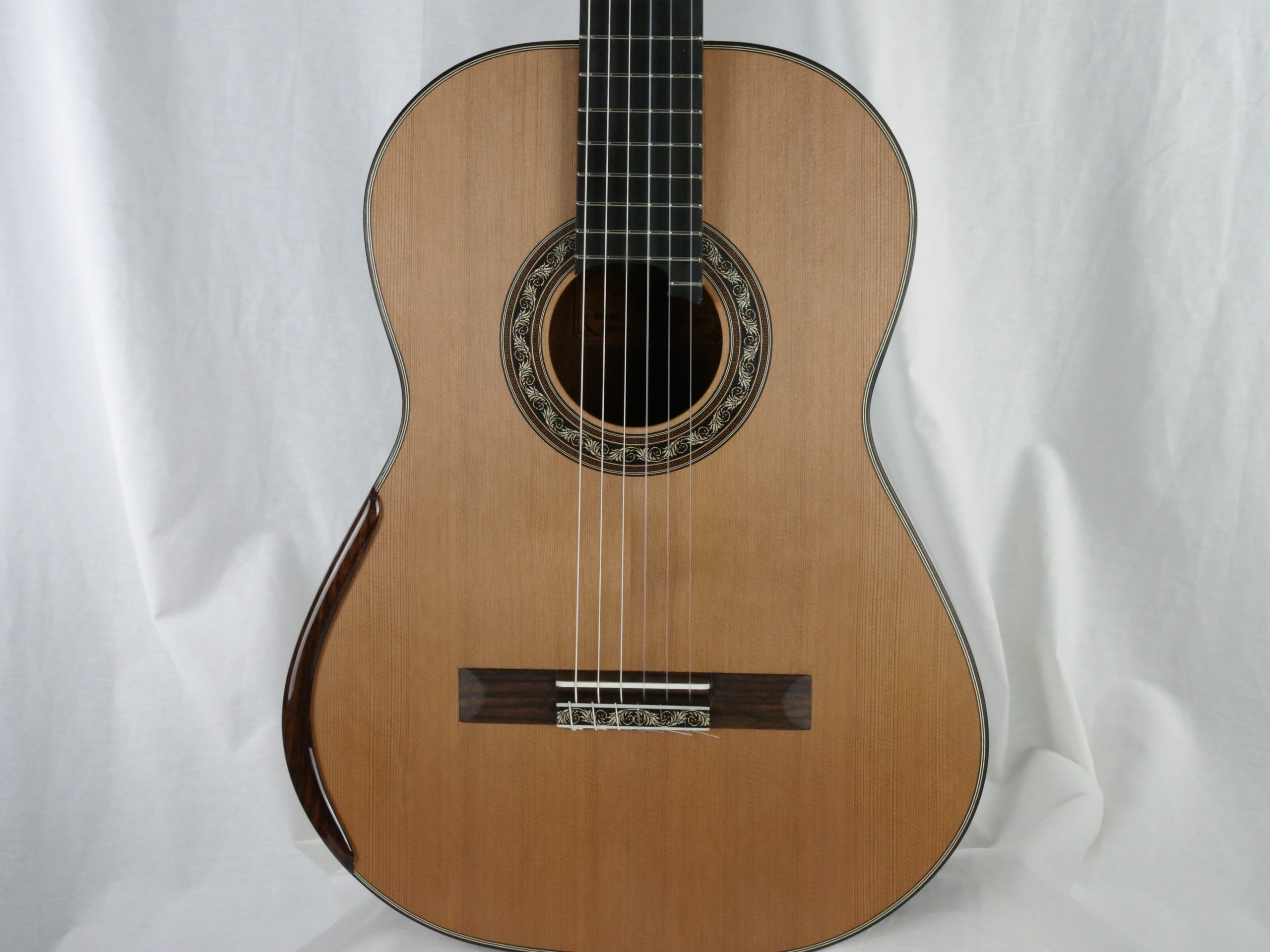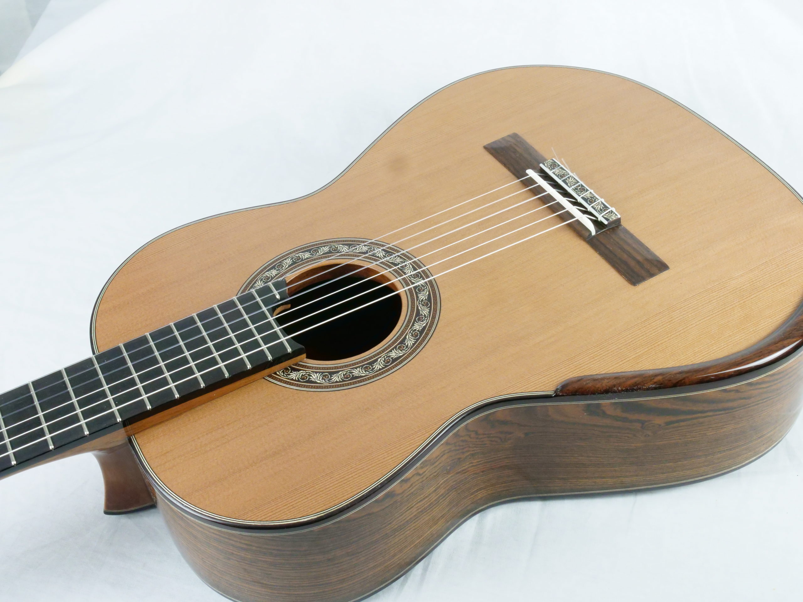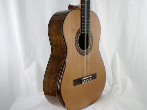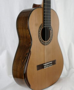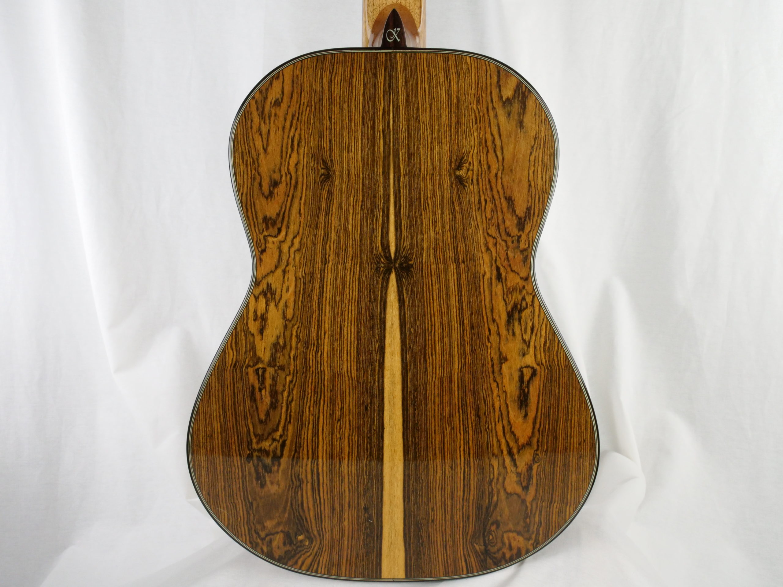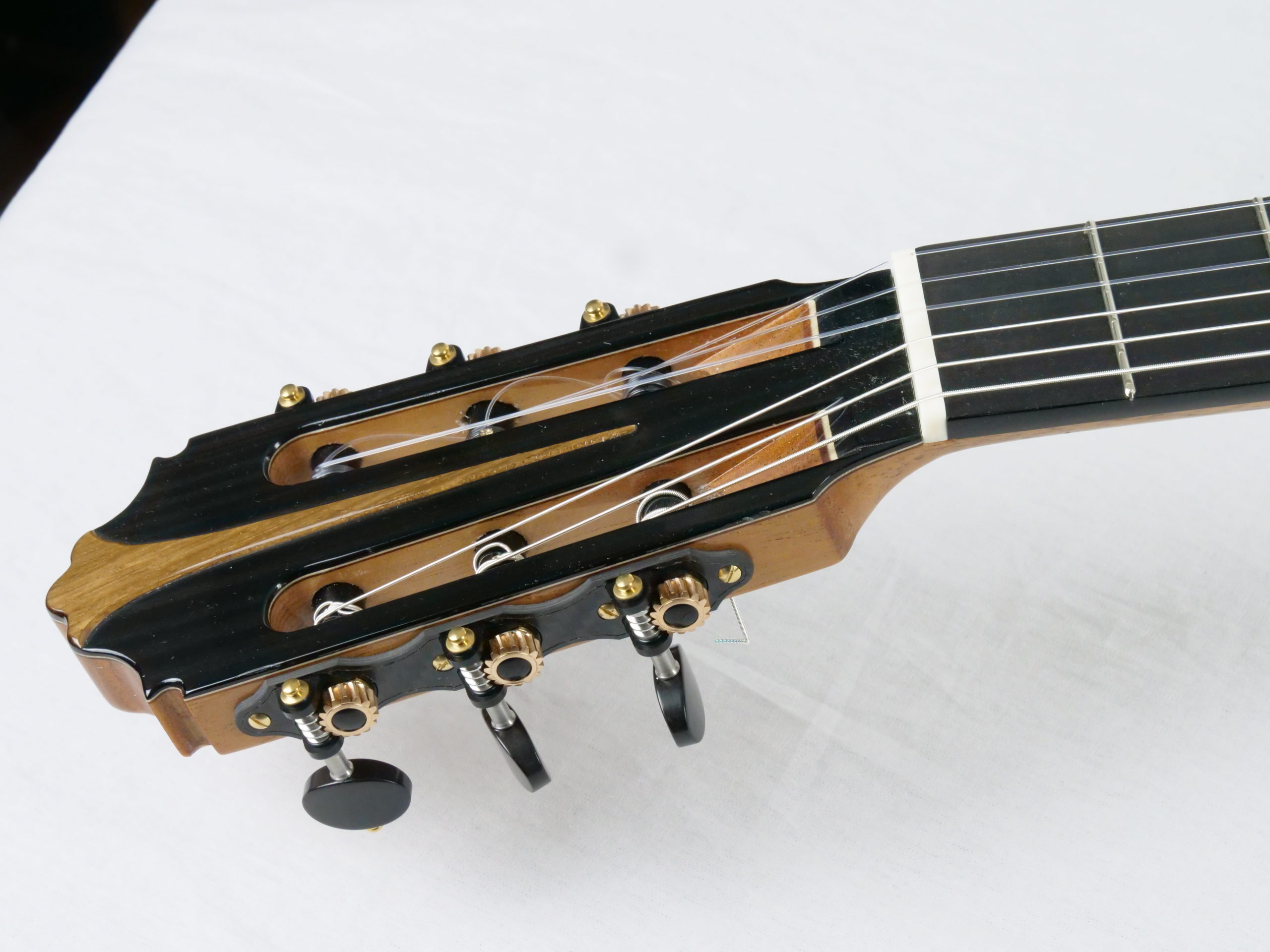 Les guitares lattice de Charalampos Koumridis sont surprenantes de musicalité, Charalampos réussit à ‘gommer’ les sonorités typiques des lattice pour ne conserver que l’ajout de puissance et la musicalité. Cette guitare est une lattice inspirée des guitares Australiennes de Greg Smallmann mais avec d’importantes différences en matière de structure et de matériaux. Le résultat : de la rondeur, de l’amplitude sonore sans le coté un peu ‘cartonneux’ de certaines Smallman dans les basses. Contrairement à certaines lattice Australiennes celles de Charalampos offrent un sonorité assez traditionnelle mais avec une ampleur et un sustain infinie.