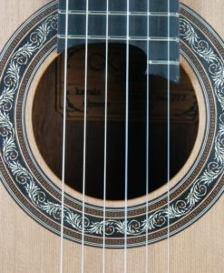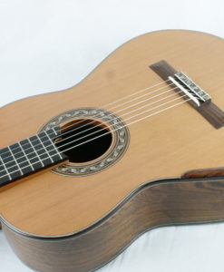 - Manche: cèdre espagnol renforcé avec de l’ébène épaisseur : 1ére fret – 21.5 mm 9e fret – 23 mm