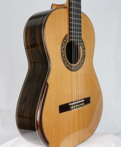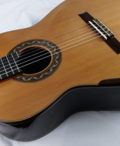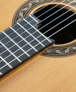 - Manche: cèdre espagnol renforcé avec de l’ébène épaisseur : 1ére fret – 21.5 mm 9e fret – 23 mm