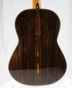 Cette guitare n°177 est surement une des meilleures lattice disponible sur le marché. Elle comporte les quelques modifications mises en œuvre depuis un peu moins d’un an, dont le résultat est étonnant d’amplitude sonore . La sonorité est majestueuse. Le dos et les éclisses sont en bois massifs, un magnifique palissandre de Madagascar.