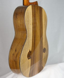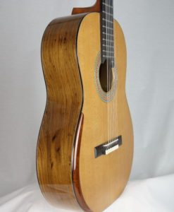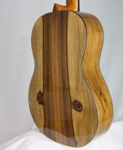 Voici une des dernières guitares reçues de Cleyton Fernandes avec notamment un trés beau Guajuvira. Le Guajuvira est un bois d’Amérique centrale trés spectaculaire visuellement, d’une densité voisine du palissandre indien 790 kg/m3 connu sous le nom commun de Brazilian Hickory. Nous vous laissons choisir la guitare qui vous convient le plus entre la Cleyton en Palissandre indien, Guajuvira ou Ziricote.