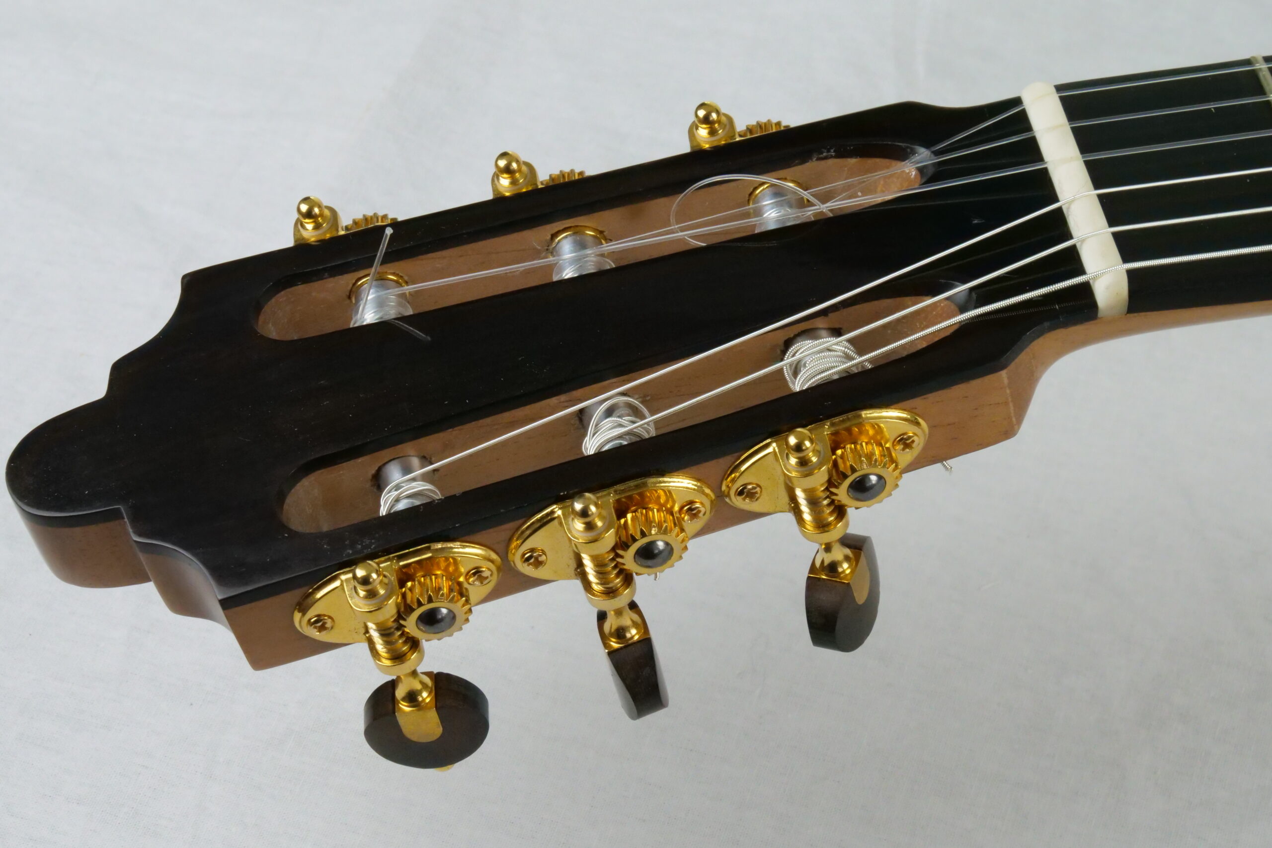 Cette double table est réalisée dans les règles de l’art avec une table très fine en cèdre et nomex et un corps en palissandre indien. Les mécaniques sont des mécaniques brésiliennes haut de gamme VS tuners. Sans doute l’une de nos meilleures DT.
