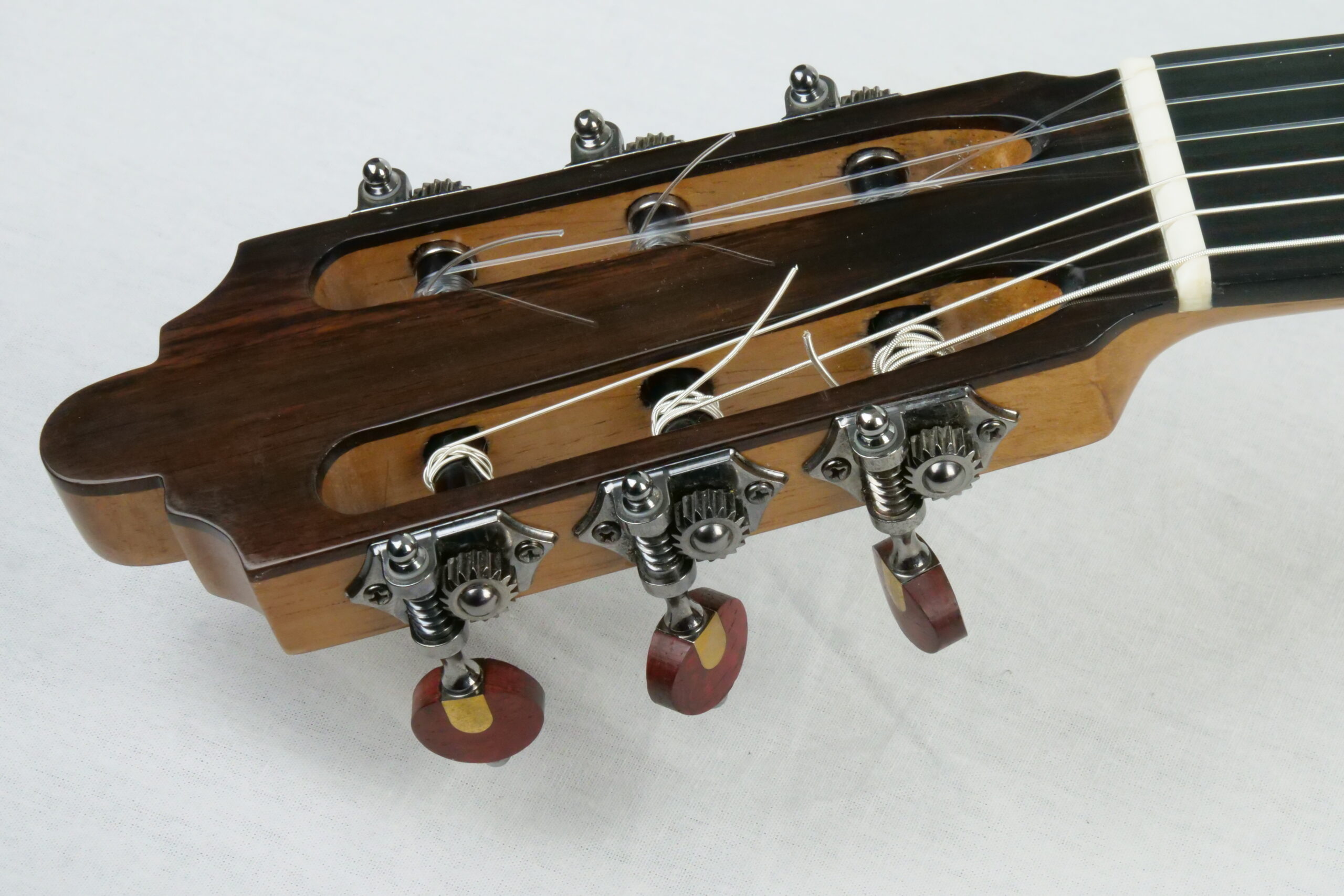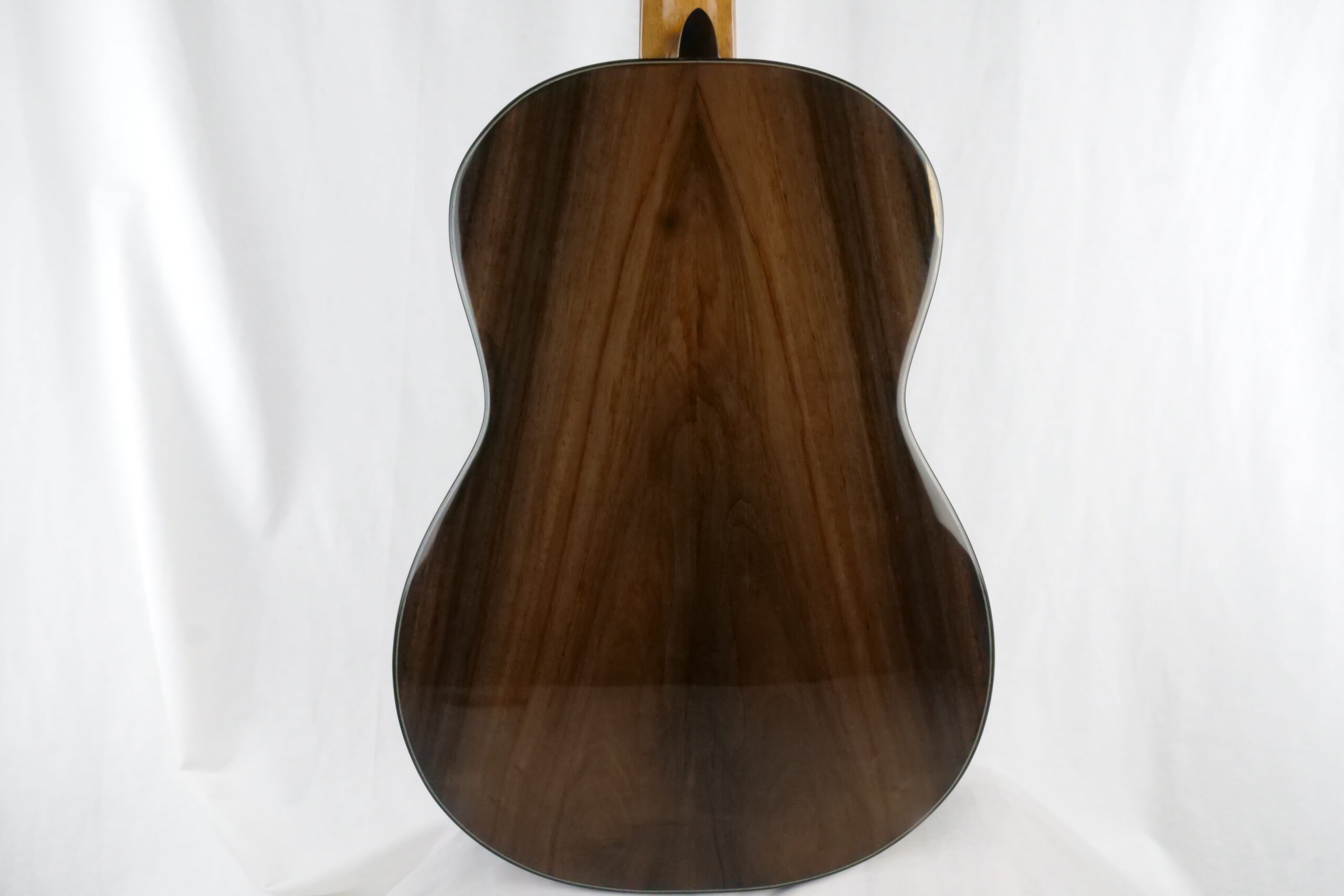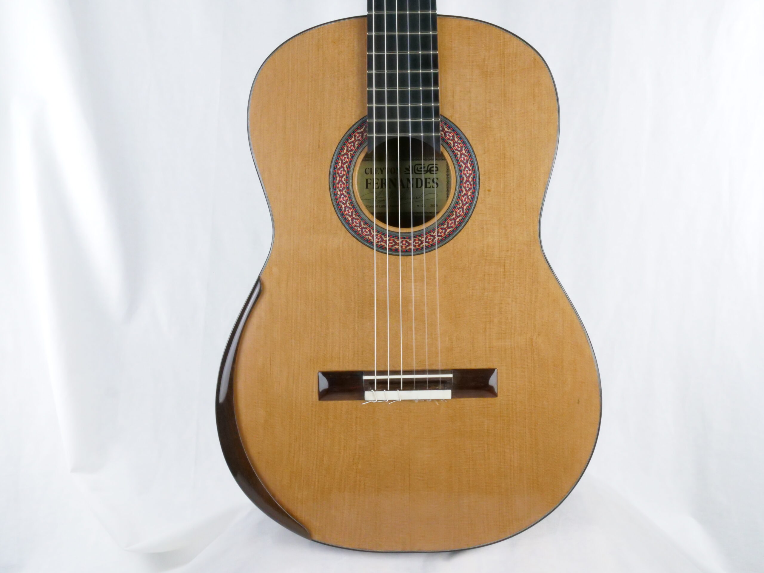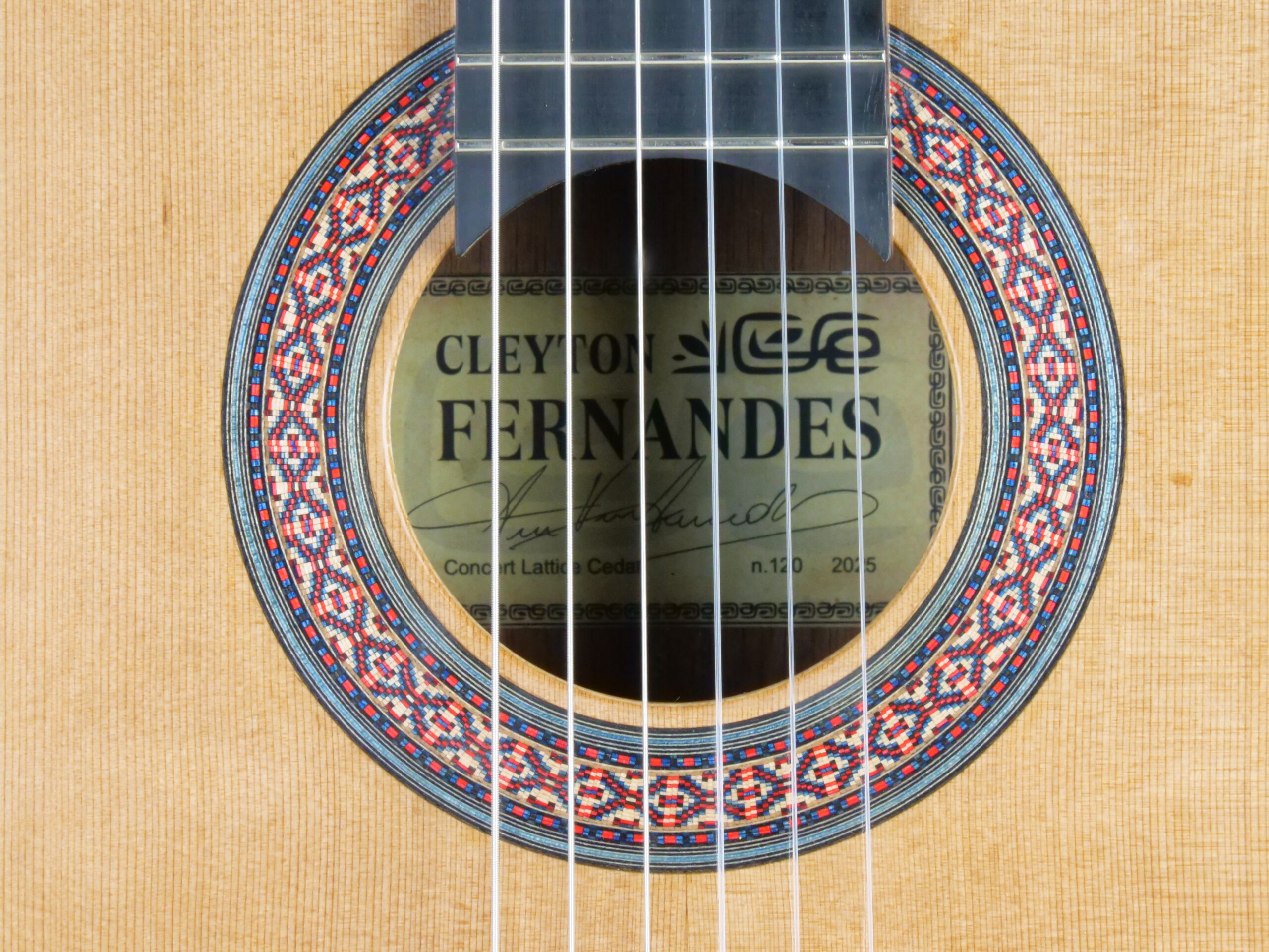 Nous avons trouvé un jeune luthier exceptionnel au Brésil. Cleyton Fernandes est d’abord et avant tout un concertiste titulaire d’un PhD en guitare classique et qui enseigne à l’université fédérale brésilienne près de Fortaleza dans le nord-est du Brésil. Parce qu’il ne trouvait pas au Brésil de guitare qui corresponde à ses attentes, il s’est lancé en 2016 dans la fabrication de guitares inspirées de la lutherie australienne et notamment de celle du luthier Zbigniew Gnatek. Depuis, de nombreux concertistes jouent sur ses guitares (Everton Gloeden (Brazilian Guitar Quartet), Mario Ulloa et Gustavo Costa) et Cleyton a 18 mois d’attente et fabrique une dizaine de guitares.Cette guitare 2020 a une table avec un barrage en quadrillage (lattice) et un barrage en balsa renforcé avec du carbone. Les dos et les éclisses sont en palissandre indien massif avec une certaine épaisseur. Le manche en acajou est en forme de U et offre le même confort de jeu que celui des Daniel Friederich (un manche assez épais donc mais tout à fait confortable).La sonorité est élégante, traditionnelle et claire, avec une belle séparation des voix. Les basses sont puissantes et profondes et les aiguës cristallins et riches en harmoniques. La lutherie sans défaut. Les guitares de Cleyton sont encore offertes à un prix raisonnable.