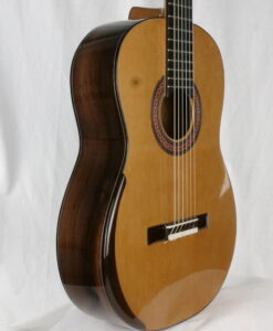 Nous avons trouvé un jeune luthier exceptionnel au Brésil. Cleyton Fernandes est d’abord et avant tout un concertiste titulaire d’un PhD en guitare classique et qui enseigne à l’université fédérale brésilienne près de Fortaleza dans le nord-est du Brésil. Parce qu’il ne trouvait pas au Brésil de guitare qui corresponde à ses attentes, il s’est lancé en 2016 dans la fabrication de guitares inspirées de la lutherie australienne et notamment de celle du luthier Zbigniew Gnatek. Depuis, de nombreux concertistes jouent sur ses guitares (Everton Gloeden (Brazilian Guitar Quartet), Mario Ulloa et Gustavo Costa) et Cleyton a 18 mois d’attente et fabrique une dizaine de guitares.Cette guitare 2020 a une table avec un barrage en quadrillage (lattice) et un barrage en balsa renforcé avec du carbone. Les dos et les éclisses sont en palissandre indien massif avec une certaine épaisseur. Le manche en acajou est en forme de U et offre le même confort de jeu que celui des Daniel Friederich (un manche assez épais donc mais tout à fait confortable).La sonorité est élégante, traditionnelle et claire, avec une belle séparation des voix. Les basses sont puissantes et profondes et les aiguës cristallins et riches en harmoniques. La lutherie sans défaut. Les guitares de Cleyton sont encore offertes à un prix raisonnable.