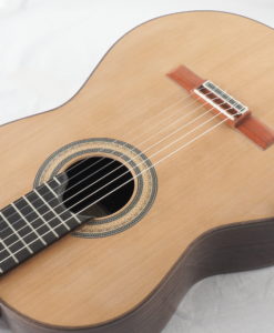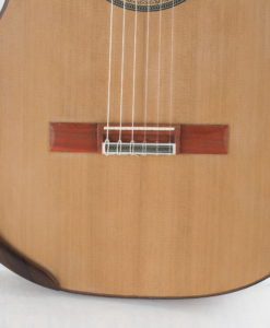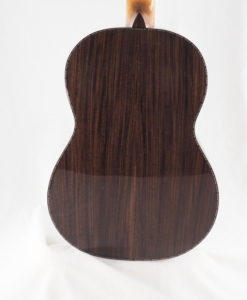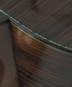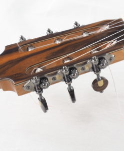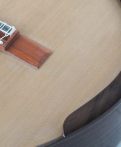 Cette guitare 2020 a une table avec un barrage en quadrillage (lattice) et un barrage en balsa renforcé avec du carbone. Les dos et les éclisses sont en palissandre indien massif avec une certaine épaisseur. Le manche en acajou est en forme de U et offre le même confort de jeu que celui des Daniel Friederich (un manche assez épais donc mais tout à fait confortable).