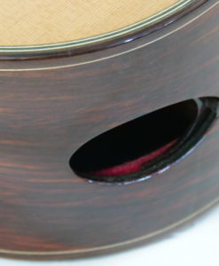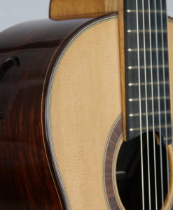 Les guitares de Constantin Dumitriu son en partie inspirées du concept lattice de Greg Smallman. Cependant Constantan est un novateur et a intégré dans cette guitare une table à ‘double-tension’ et un réflecteur : un dispositif permet de tendre la table à l’intérieur et de générer des notes plus longues et surtout plus épaisse et un réflecteur amovible permet d’accroitre la projection. Puissance et plaisir de jeu sont au rendez-vous.