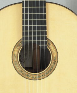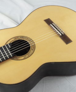 De la manière générale, les guitares classiques doubles-tables offrent une forte projection, des aigus sombres et rond. Celle-ci est tout en équilibre de ma rondeur avec beaucoup de medium mais de la précision grâce à l’épicéa..