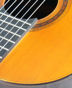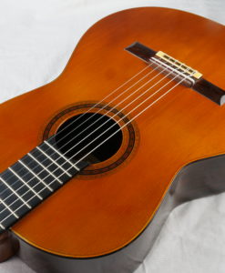 - La guitare a été jouée et entretenue régulièrement. Le vernis a été rafraichi récemment. Du fait de son usure, le vernis était en effet absent de certaines partie de la guitare sans que le bois ne soit pour cela touché. Le dernier entretien a consisté à nettoyer et ajouter une couche trés fine de vernis au tampon. La guitare est ainsi dans un état presque neuf.