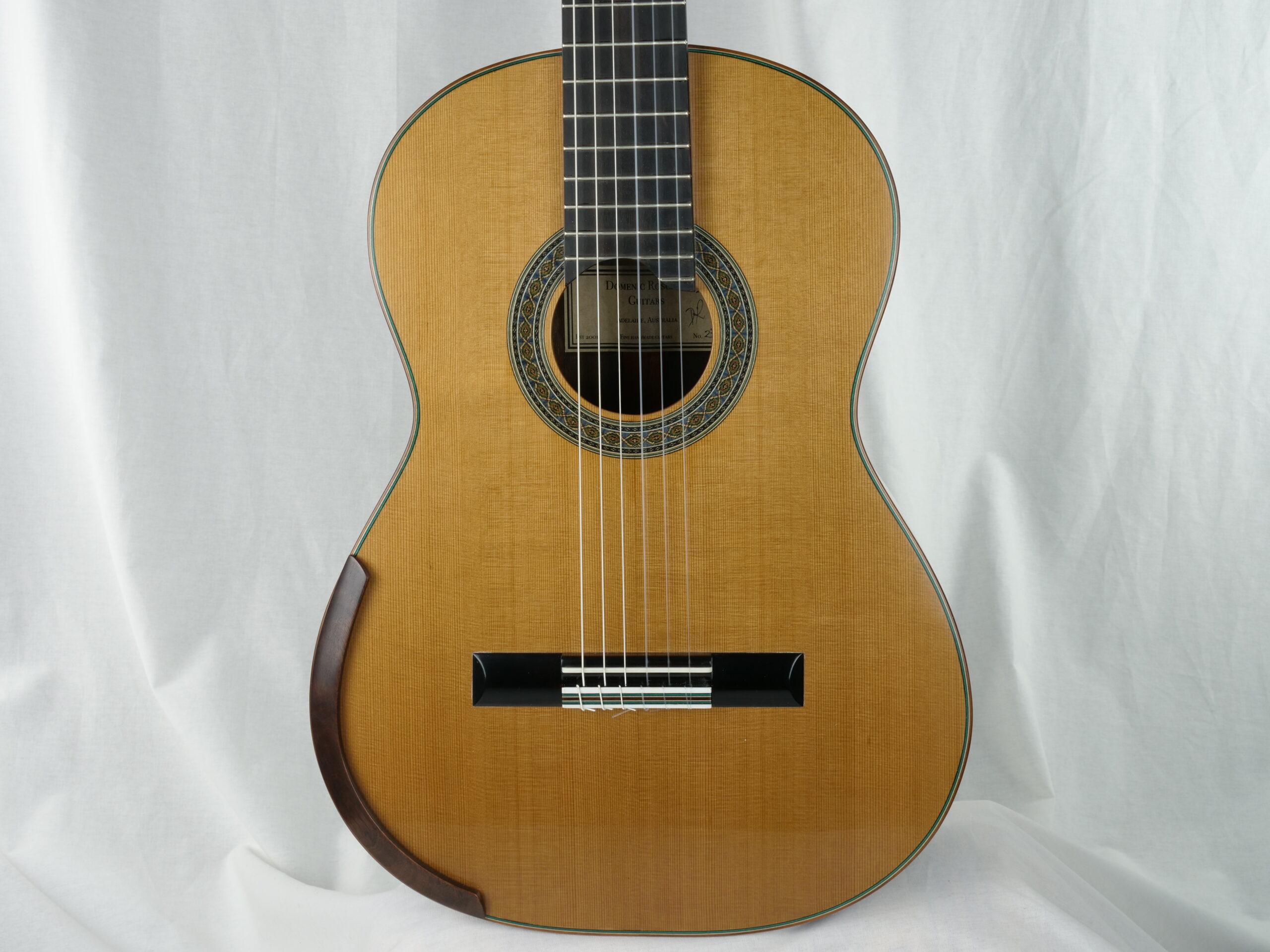 - Une table en cèdre avec un barrage en quadrillage en balsa rehaussé d’un fils de carbone. La table n’est pas ultra fine mais fait en moyenne 1,5 mm d’épaisseur