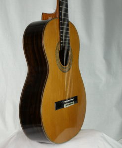 Comme vous le savez nous sommes des fans des guitares modernes double-tables et lattice. Alors pourquoi référencer dans notre showroom une copie Fleta : tout simplement parce que nous avons été totalement époustouflés par la copie Ignacio Fleta de Domenic Roscioli. La lutherie est magnifique, la qualité des bois et notamment de la table est impressionnante et la sonorité majestueuse.Si vous interrogez les luthiers sur les guitares qui ont compté dans l’histoire de la lutherie, tous sans exception citerons Ignacio Fleta (1897-1977). Ignacio Fleta connaitra la consécration en 1957 quand Andrés SEGOVIA lui commande une puis plusieurs guitares. Depuis lors, on ne compte plus les solistes de renommée mondiale qui jouent sur ses guitares. Il meurt en 1977, artisan reconnu et honoré dans le monde entier, et ses fils Gabriel et Francisco lui succèdent. Cette firme continue de fabriquer des guitares très demandées par les musiciens, et, conduite dorénavant par le petit-fils d’Ignacio, Gabriel jr, elle annonce maintenant 20 ans de délai entre la commande d’une guitare et sa livraison…Domenic nous offre ici une réédition du modèle Fleta de 1961 avec un dos et des éclisses en Pardo Rosewood et une magnifique table en cèdre. La sonorité est majestueuse et élégante, avec le juste équilibre sonore basse et aigus.Voici comment Domenic Roscioli parle de sa passion pour les Fleta :” Quand j’ai commencé à fabriquer des guitares classiques, j’ai voulu réaliser des guitares traditionnelles qui offrent la plus belle sonorité possible. La sonorité des guitares d’Ignacio Fleta m’a toujours plus impressionnée parmi toutes les guitares que j’ai écoutées. Je connaissais un collectionneur à Adelaïde qui possédait 5 Fleta originales et j’avais les plans de 3 de ces guitares (1961, 1968, 1977). Le plan de la 1961 était mon préféré car la guitare était sans aucun doute la meilleure de toute. De plus, j’ai eu l’occasion de travailler en réparation sur un certain nombre de Fleta que j’ai étudié avec attention. Mes guitares Fleta sont inspirées des Fleta de la période 1960-1970 qui est pour moi la meilleure période.Au début, je suivais scrupuleusement les indications des plans (même dimensions, même épaisseur, bois similaire) avec des résultats très probants.Maintenant, j’évalue chaque table pour obtenir la meilleures ‘sonorité Fleta’. Je n’utilise que des tables en épicéa master grade. Rechercher les meilleurs matériaux pour obtenir le meilleur rendu sonore est une quête sans fin.De manière générale, je recherche des basses solides et puissantes avec des aigus clairs. »Desciptif de ce numéro 181 :