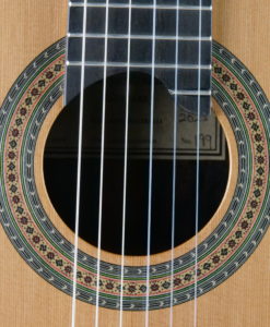 Comme vous le savez nous sommes des fans des guitares modernes double-tables et lattice. Alors pourquoi référencer dans notre showroom une copie Fleta : tout simplement parce que nous avons été totalement époustouflés par la guitare d’inspiration Ignacio Fleta de Domenic Roscioli. La lutherie est magnifique, la qualité des bois et notamment de la table est impressionnante et la sonorité majestueuse. Si vous interrogez les luthiers sur les guitares qui ont compté dans l’histoire de la lutherie, tous sans exception citerons Ignacio Fleta (1897-1977). Ignacio Fleta connaitra la consécration en 1957 quand Andrés SEGOVIA lui commande une puis plusieurs guitares. Depuis lors, on ne compte plus les solistes de renommée mondiale qui jouent sur ses guitares. Il meurt en 1977, artisan reconnu et honoré dans le monde entier, et ses fils Gabriel et Francisco lui succèdent. Cette firme continue de fabriquer des guitares très demandées par les musiciens, et, conduite dorénavant par le petit-fils d’Ignacio, Gabriel jr, elle annonce maintenant 20 ans de délai entre la commande d’une guitare et sa livraison…Domenic nous offre ici une réédition du modèle Fleta de 1961 avec un dos et des éclisses en Pardo Rosewood et une magnifique table en cèdre. La sonorité est majestueuse et élégante, avec le juste équilibre sonore basse et aigus.