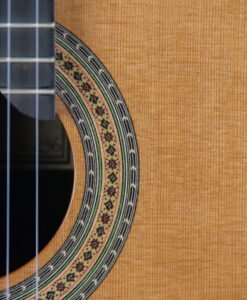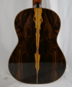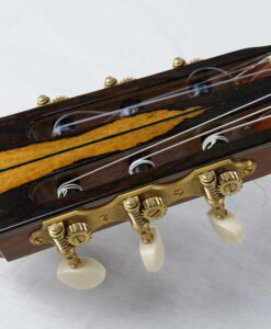 Comme vous le savez nous sommes des fans des guitares modernes double-tables et lattice. Alors pourquoi référencer dans notre showroom une copie Fleta : tout simplement parce que nous avons été totalement époustouflés par la guitare d’inspiration Ignacio Fleta de Domenic Roscioli. La lutherie est magnifique, la qualité des bois et notamment de la table est impressionnante et la sonorité majestueuse. Si vous interrogez les luthiers sur les guitares qui ont compté dans l’histoire de la lutherie, tous sans exception citerons Ignacio Fleta (1897-1977). Ignacio Fleta connaitra la consécration en 1957 quand Andrés SEGOVIA lui commande une puis plusieurs guitares. Depuis lors, on ne compte plus les solistes de renommée mondiale qui jouent sur ses guitares. Il meurt en 1977, artisan reconnu et honoré dans le monde entier, et ses fils Gabriel et Francisco lui succèdent. Cette firme continue de fabriquer des guitares très demandées par les musiciens, et, conduite dorénavant par le petit-fils d’Ignacio, Gabriel jr, elle annonce maintenant 20 ans de délai entre la commande d’une guitare et sa livraison…Domenic nous offre ici une réédition du modèle Fleta de 1961 avec un dos et des éclisses en ziricote et une magnifique table en cèdre. La sonorité est majestueuse et élégante, avec le juste équilibre sonore basse et aigus.