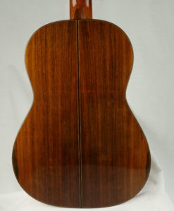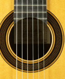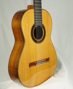 La guitare a été entretenue avec soin et la guitare ne présente aucune réparation. La table a été revernis récemment dans les règles de l’art. La guitare est dans un état parfait avec seulement une petite marque dernière la corde de mi aigu.