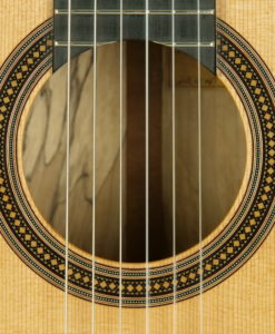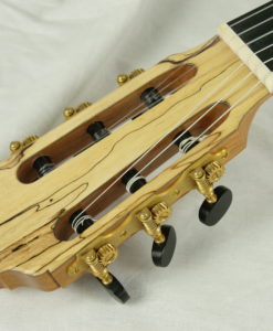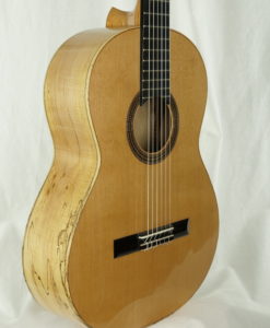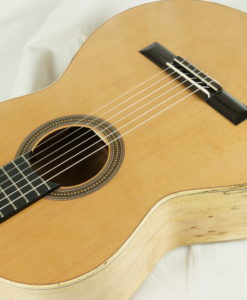 La sélection de bois apporte une dimension sonore unique. L’érable – bois par excellence des instruments du quatuor et aussi plébiscité par Antonio Torres – contribue à apporter une certaine complexité et une belle rondeur. Le cèdre à l’opposé apporte une immédiateté et un punch à cette guitare unique.