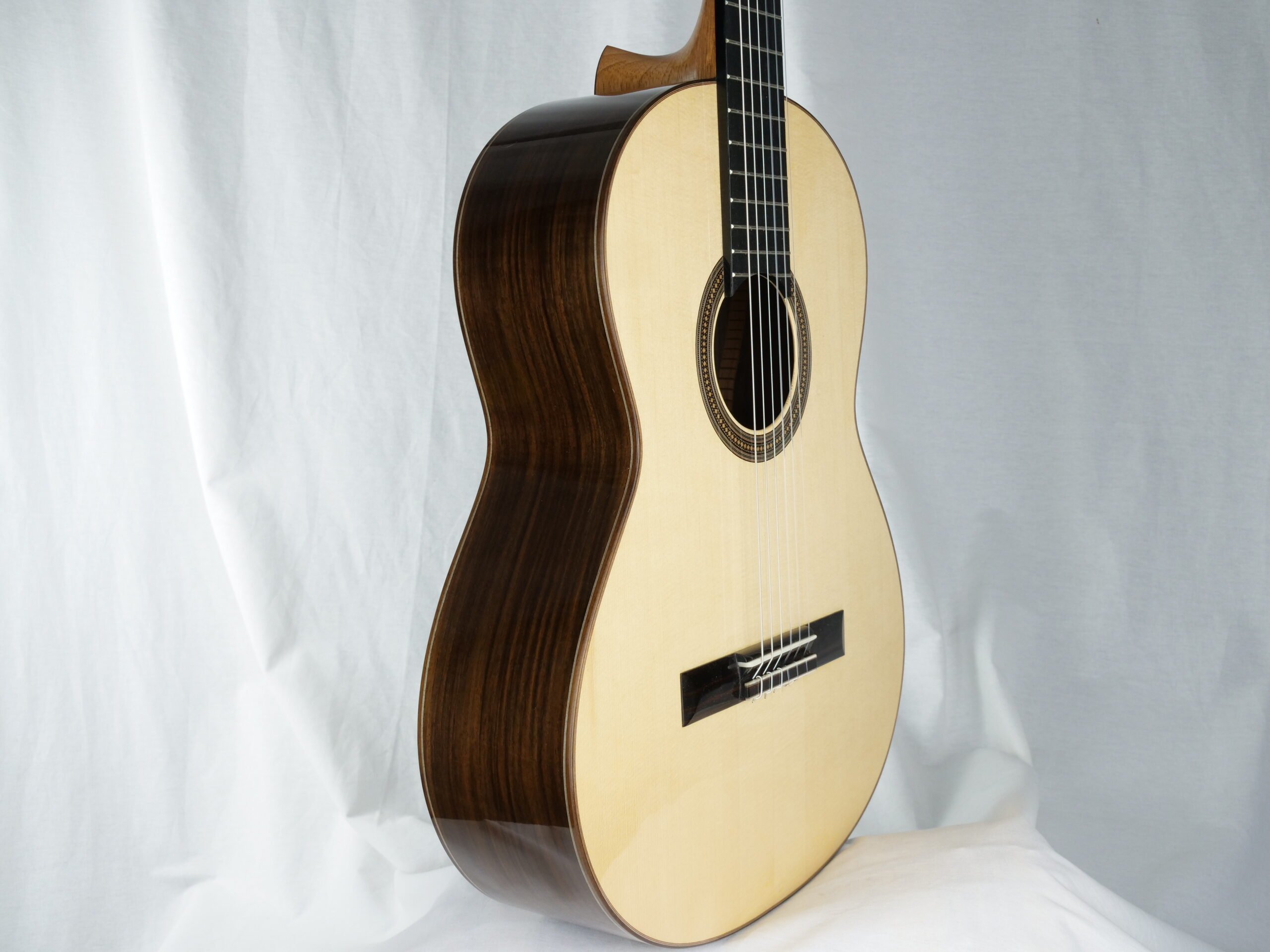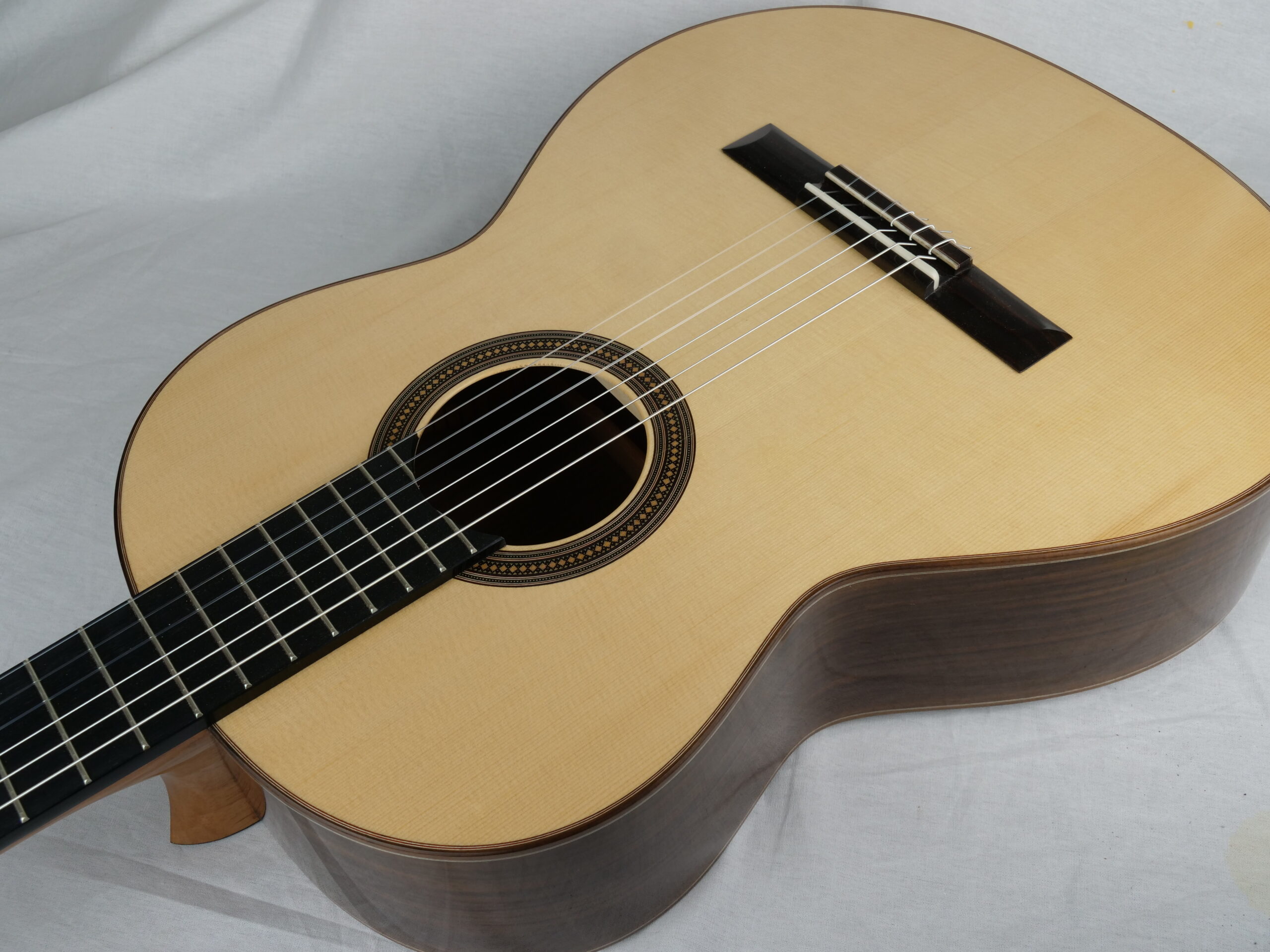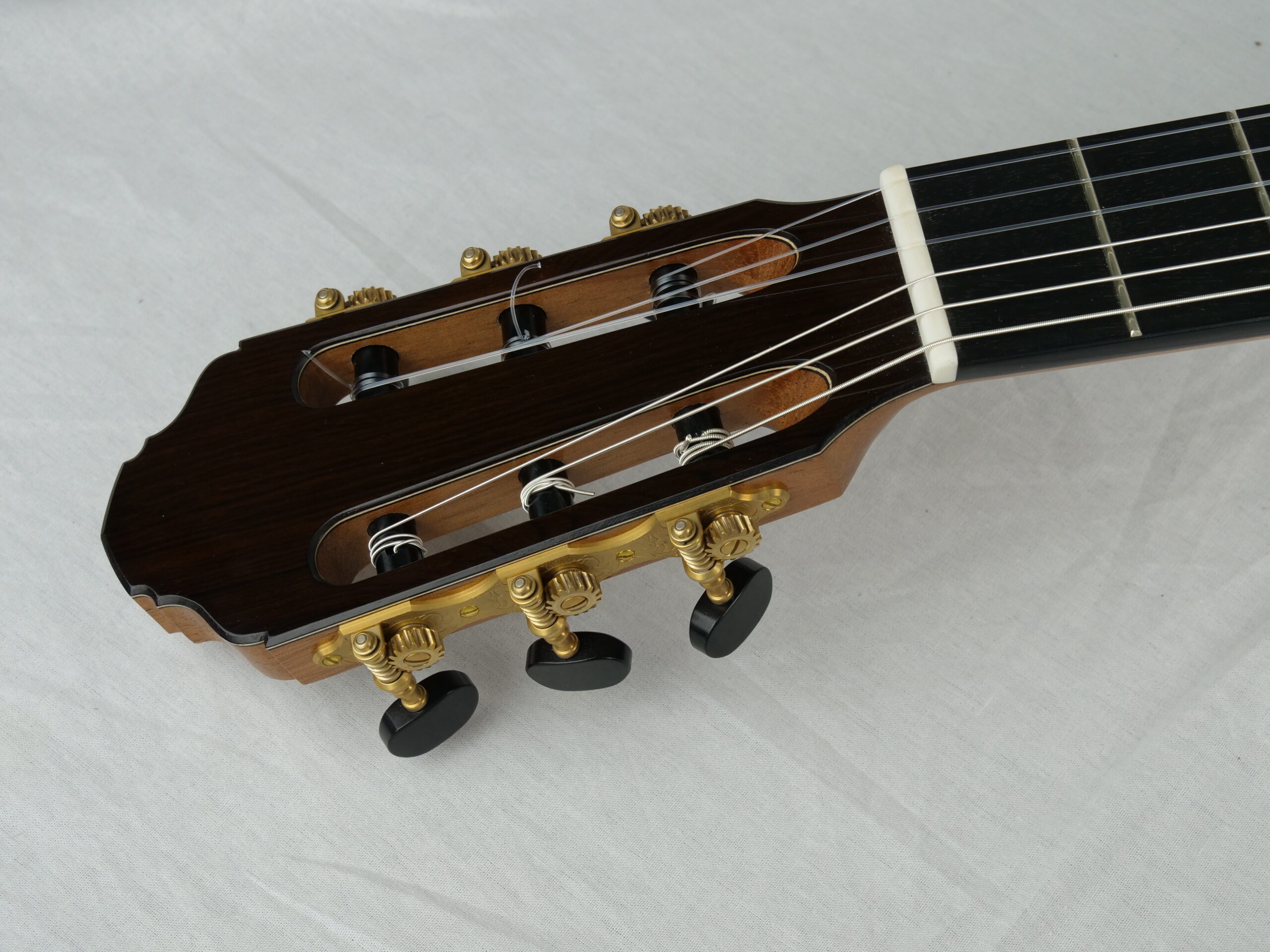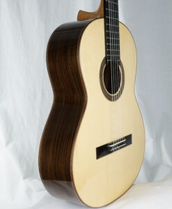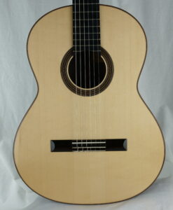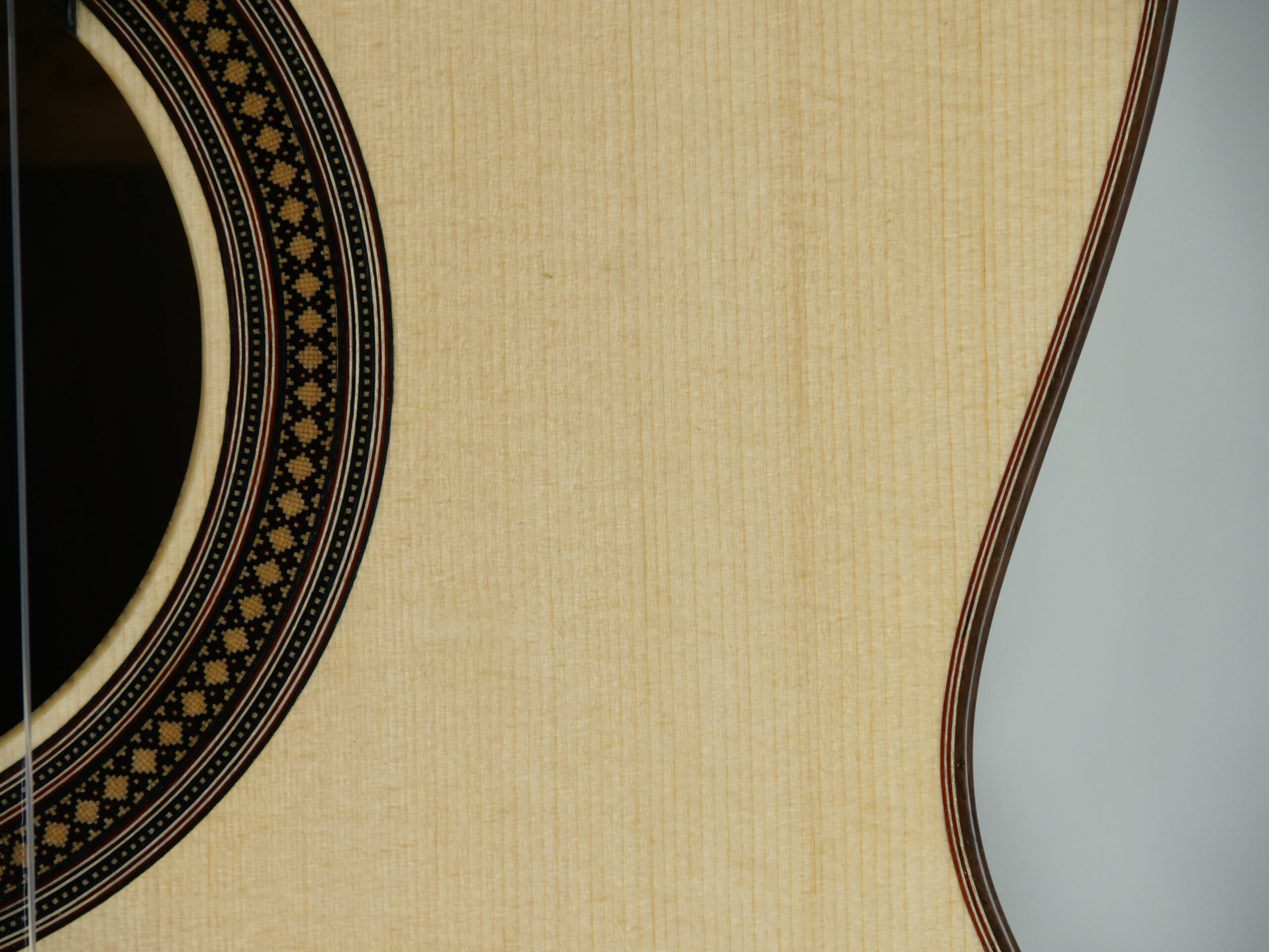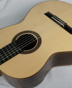 La sélection de bois apporte une dimension sonore unique. L’érable – bois par excellence des instruments du quatuor et aussi plébiscité par Antonio Torres – contribue à apporter une certaine complexité et une belle rondeur. Le cèdre à l’opposé apporte une immédiateté et un punch à cette guitare unique.