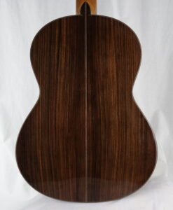 François Régis Léonard se démarque des luthiers Français qui restent somme toute assez traditionnels. Voici la dernière guitare de François Régis Léonard qui combine tradition et modernité avec une sonorité traditionnelle boostée par un barrage en croisillon sans carbone ni balsa qui confère à cette guitare une belle dynamique et épaisseur sonore. François-Régisa a modifié la structure de sa table pour donner à sa guitare une réponse plus pleine et plus charnue. Cette évolution est significative et fait de François Régis Léonard l’un des meilleurs luthiers Français d’aujourd’hui.