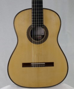 Gerardo Centonze est un jeune luthier de 36 ans qui fabriquent des guitares traditionnelles inspirées des guitares espagnoles (Torres) mais avec une personnalité toute italienne: puissance, rondeur et équilibre. Parmi les quelques 60 luthiers présents à Roma Expo Guitars, la guitare Edition Limitée de Gerardo nous ont interpellés pour sa beauté sonore et sa facilité de jeu. Tout en rondeur avec une belle puissance et une lutherie impeccable.