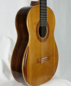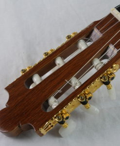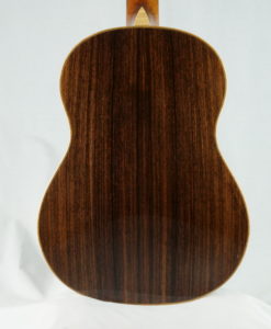 La table en cèdre est magnifiquement émaillée, les côtés sont en Palissandre indien . Manche en cèdre d’Australie, mécaniques Schaller, chevalet en Padouk, et la tête est plaquée de blackwood. Tous les bois sont de provenance australienne, ce qui est l’aboutissement d’années de recherches physiques acoustiques de Graham Caldersmith.