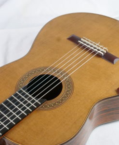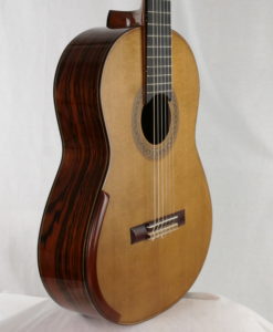 Une fois n’est pas coutume : voici une Jim Redgate de 2009 en presque parfait état. Cette guitare est identique à celle d’Ana Vidovic qui date de 2009 aussi. Que dire sinon que la guitare est parfaite. Les guitares d’occasion du luthier Jim Redgate sont rares.Jim Redgate est l’un des luthiers Australiens les plus prisées des concertistes. Ses guitares sont cependant trés différentes des guitares de Greg Smallman et plus proches des guitares traditionnelles. La guitare est plus légère et offre des aigus magnifiques et des basses assez pures sans le coté ‘typique’ des Smallman.Cette guitare est de 2007 et possède déjà les mêmes attributs que les guitares de Jim d’aujourd’hui. Pas étonnant qu’elles aient été choisies par Ana Vidovoc qui joue depuis plus de 20 ans sur des guitares de Jim Redgate. Chose incroyable elle est dans un état exceptionnel.Ce qui caractèrise les guitares de Jim Redgate , c’est avant tout une certaine pureté sonore avec des aigus cristallins, une belle séparation des voix et une belle épaisseur sonore.