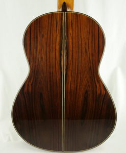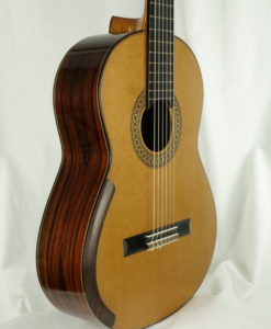 Philippe et moi-même avons commencé notre aventure, il y a plus de 10 ans avec deux guitares de Jim Redgate et vous voulions absolument vous offrir la possibilité de découvrir une Jim Redgate lattice de 2022.La lutherie lattice de Jim a évolué vers celle des guitares traditionnelles avec une table assez épaisse et un poids plume au alentour de 1.5 kg. Par rapport à celles que nous connaissions les nouvelles sont légèrement plus puissantes, un peu plus rondes et plus dynamiques.Jim Redgate est l’un des luthiers Australiens les plus prisées des concertistes. Ses guitares sont cependant trés différentes des guitares de Greg Smallman et plus proches des guitares traditionnelles. La guitare est plus légère et offre des aigus magnifiques et des basses assez pures sans le coté ‘typique’ des Smallman.Les guitares lattice de Jim Possèdent la même couleur sonore que celle d’ Ana Vidovic : puissance, équilibre, égalité des notes, sustain et épaisseur sonore . Pas étonnant qu’elles aient été choisies par Ana Vidovic qui joue depuis plus de 20 ans sur des guitares de Jim Redgate.Ce qui caractérise les guitares de Jim Redgate , c’est avant tout une certaine pureté sonore avec des aigus cristallins, une belle séparation des voix et une belle épaisseur sonore. Le modèle 2020 est encore plus léger et procure un plaisir immense au guitariste en offrant une guitare qui permet de traduire toute les intentions musicales, les notes se sont arrondis au fil du temps avec une belle chaleur. Les notes hyper aigus sont denses et longues. Impressionnante !