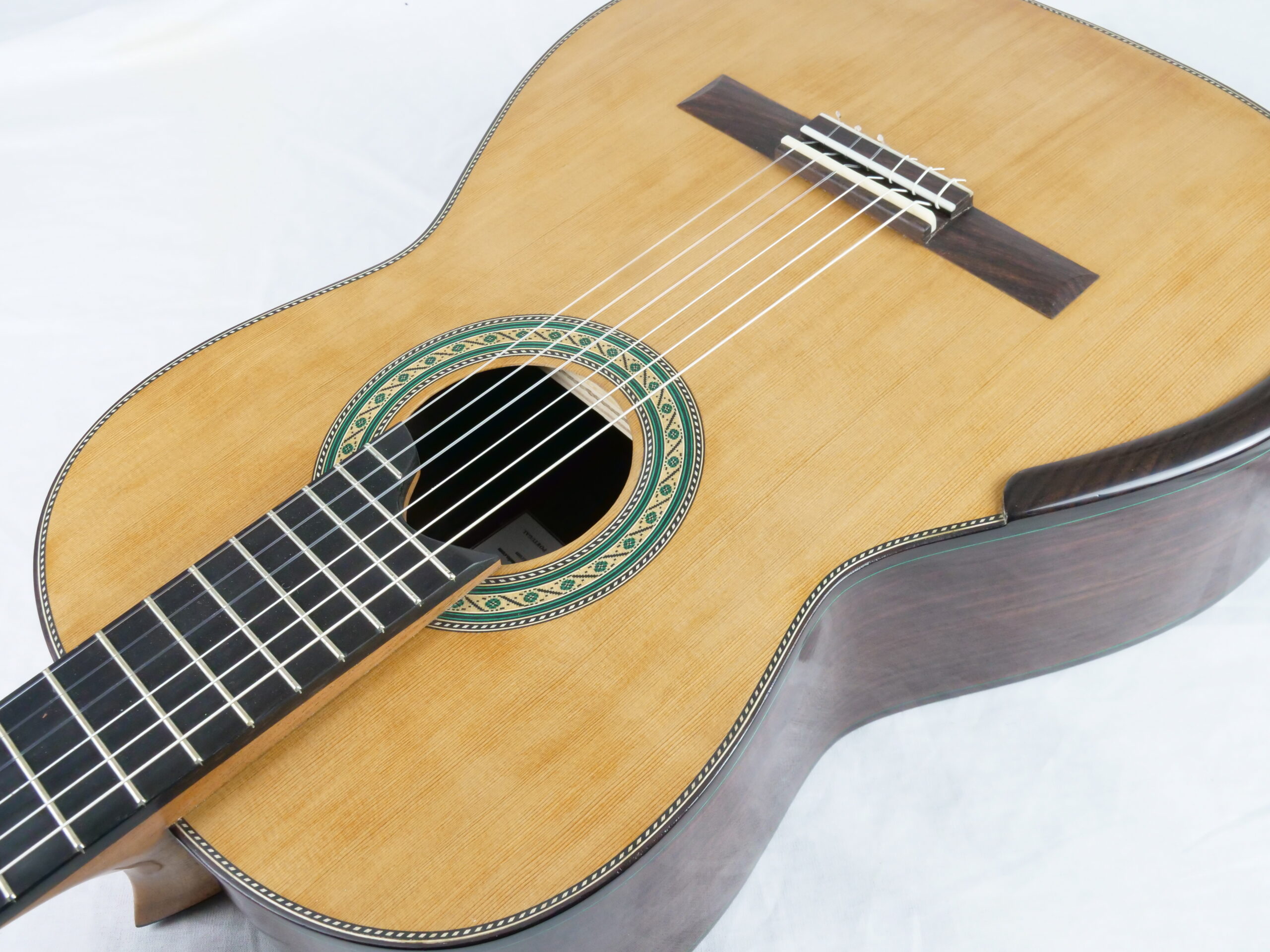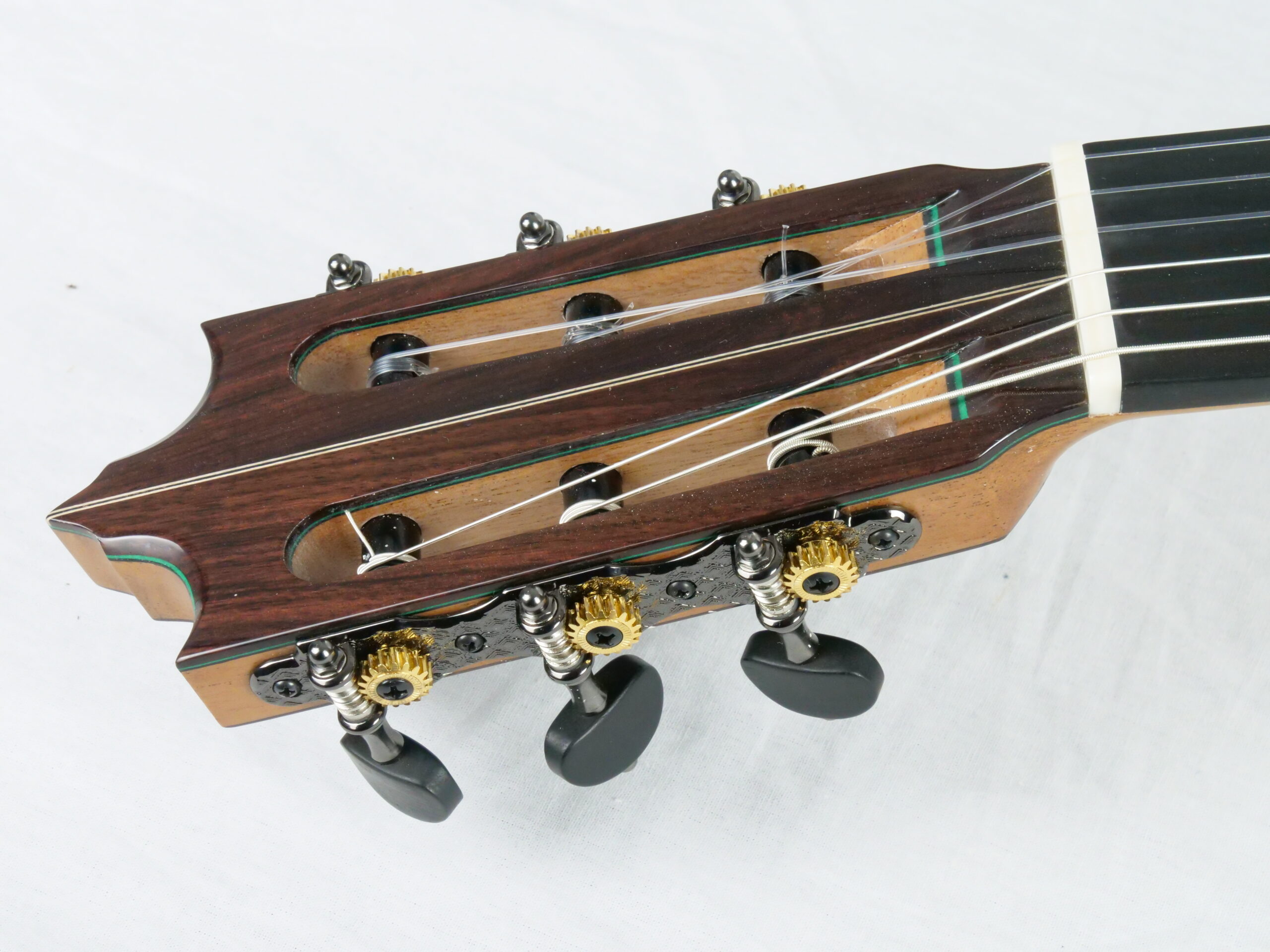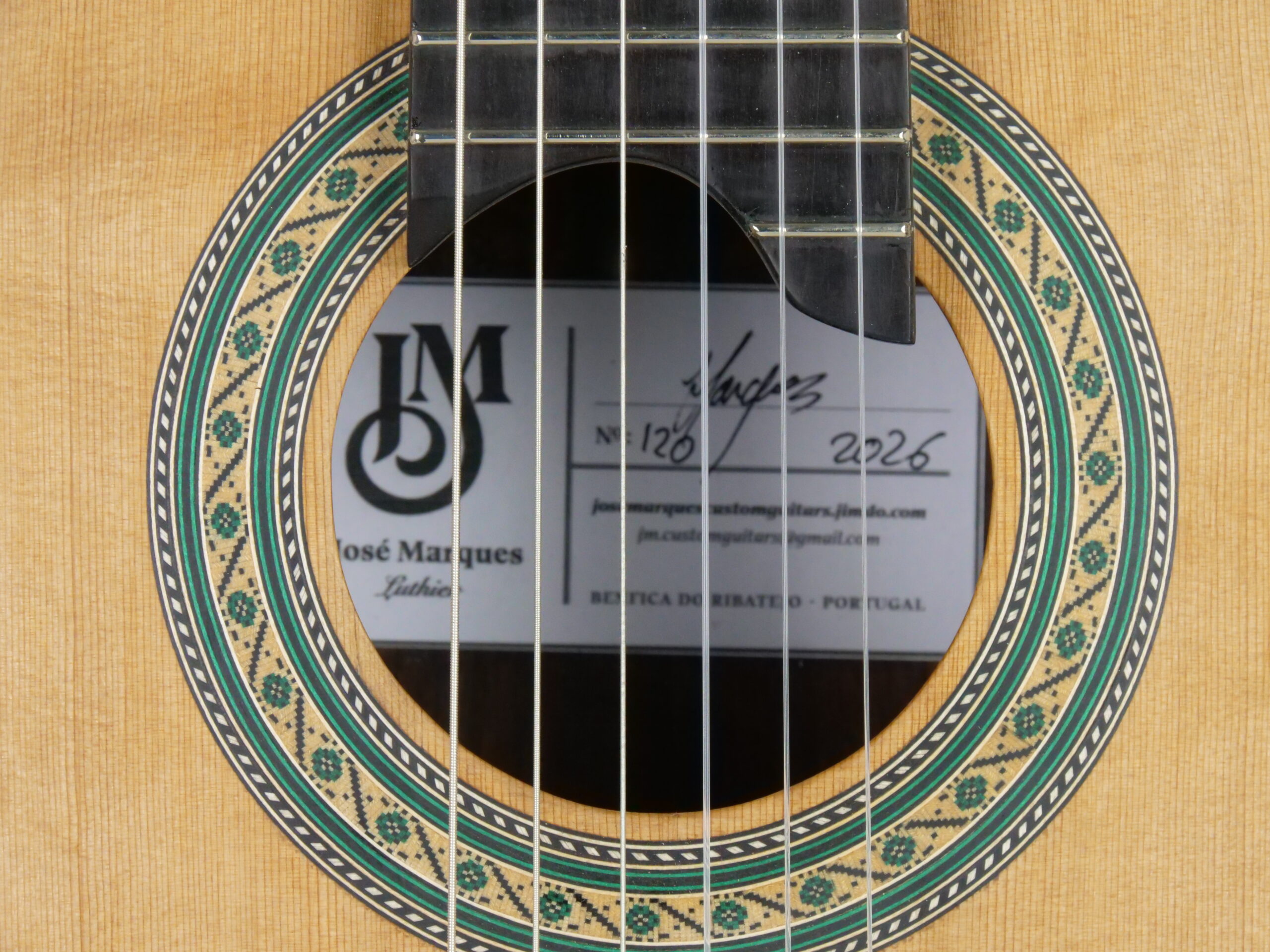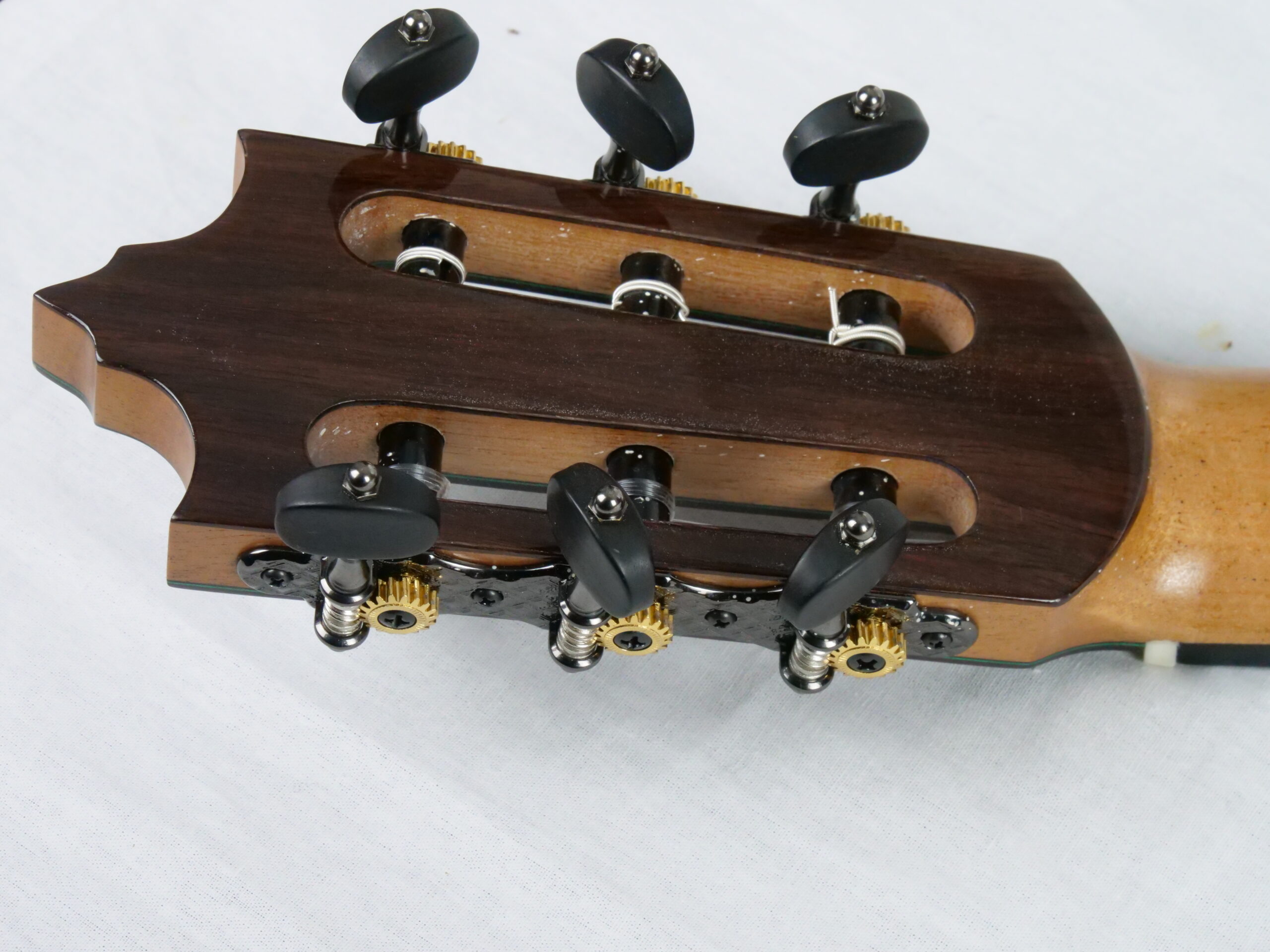 José Marques est un luthier expérimenté qui fabrique des guitares traditionnelles et des double-tables. Curieux de nature et passionné par la lutherie d’aujourd’hui, voici une de ses premières guitares lattice inspirées des guitares Greg Smallman & sons. C’est un de ses premiers essais qui nous a séduit. Puissance, rondeur et une dynamique impressionnante  pour une guitare qui partage on s’en doute beaucoup de qualité avec les lattice australiennes. Une chance d’acquérir à un prix relativement abordable une lattice qui a déjà tous les charmes d’une grande guitare.