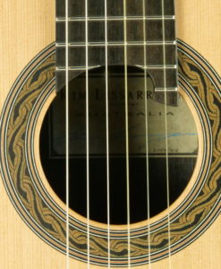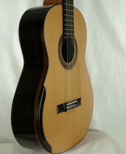 Kim Lissarrague est un luthier que nous connaissons bien. Ses guitares ont été plébiscitées pas un grand nombre de guitaristes concertistes. Ses guitares classiques offrent un compromis entre la projection ‘Australienne’ Lattice et la sonorité classique traditionnelle. Nous avons demandé à Kim Lissarrague de revoir certains points et notamment son vernis qui est un vernis à l’eau qu’il utilise pour des raisons écologiques et de santé. Cette nouvelle guitare bénéficie d’un nouveau vernis nitrocellulose toujours à l’eau qui est plus résistant.Superbe projection, de la clarté et de la tenue, combinées à une sonorité pleine et riche en caractère. Les aiguës sont clairs et fruités, les basses sont rondes et puissantes « impression violoncelle ». Paradoxalement brillant et souple.Une guitare d’exception à découvrir pour votre plus grand bonheur. Une référence et notre best -sellers.