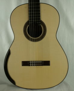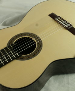Kim Lissarrague est un luthier que nous connaissons bien. Ses guitares ont été plébiscitées pas un grand nombre de guitaristes concertistes. Ses guitares classiques offrent un compromis entre la projection ‘Australienne’ Lattice et la sonorité classique traditionnelle. Nous avons demandé à Kim Lissarrague de revoir certains points et notamment son vernis qui est un vernis à l’eau qu’il utilise pour des raisons écologiques et de santé. Cette nouvelle guitare bénéficie d’un nouveau vernis nitrocellulose toujours à l’eau qui est plus résistant.Superbe projection, de la clarté et de la tenue, combinées à une sonorité pleine et riche en caractère. Les aiguës sont clairs et fruités, les basses sont rondes et puissantes « impression violoncelle ». Paradoxalement brillant et souple.Une guitare d’exception à découvrir pour votre plus grand bonheur. Une référence et notre best -sellers.