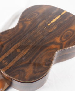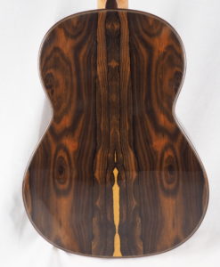 Cette guitare d’Andreas Kirmse est assez différente des double-tables allemandes. Ici la couleur sonore est résolument traditionnelle,il est impossible de deviner à l’écoute que c’est une double-table. Tout rappel la sonorité des grandes guitares allemandes,les basses sont puissantes et les aigus cristallins. Une certaine clareté permet à cette guitare de porter sa voix dans des trés grands espaces. Les réglages sont exceptionnels et la lutherie délicate.