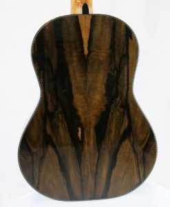 - Dos et éclisses en ovangkol d’Afrique à l’extérieur doublé avec du wengé